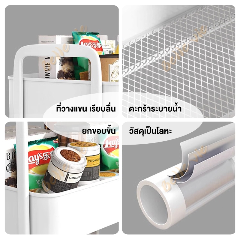 BV รถเข็น เหล็ก ชั้นวางของมีล้อ 3/4ชั้น ชั้นรถเข็น พร้อมล้อเลื่อน+ที่จับ แข็งแรงกันสนิม เคลื่อนย้ายสะดวก ชั้นวางของเหล็ก