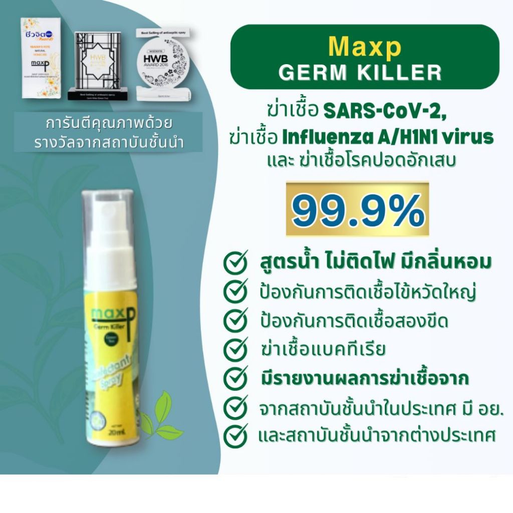 Maxp สเปรย์ฆ่าเชื้อ มี อย. ฆ่าเชื้อโควิดทุกสายพันธุ์ ไข้หวัดใหญ่ แบคทีเรีย มีกลิ่นหอม พกพา