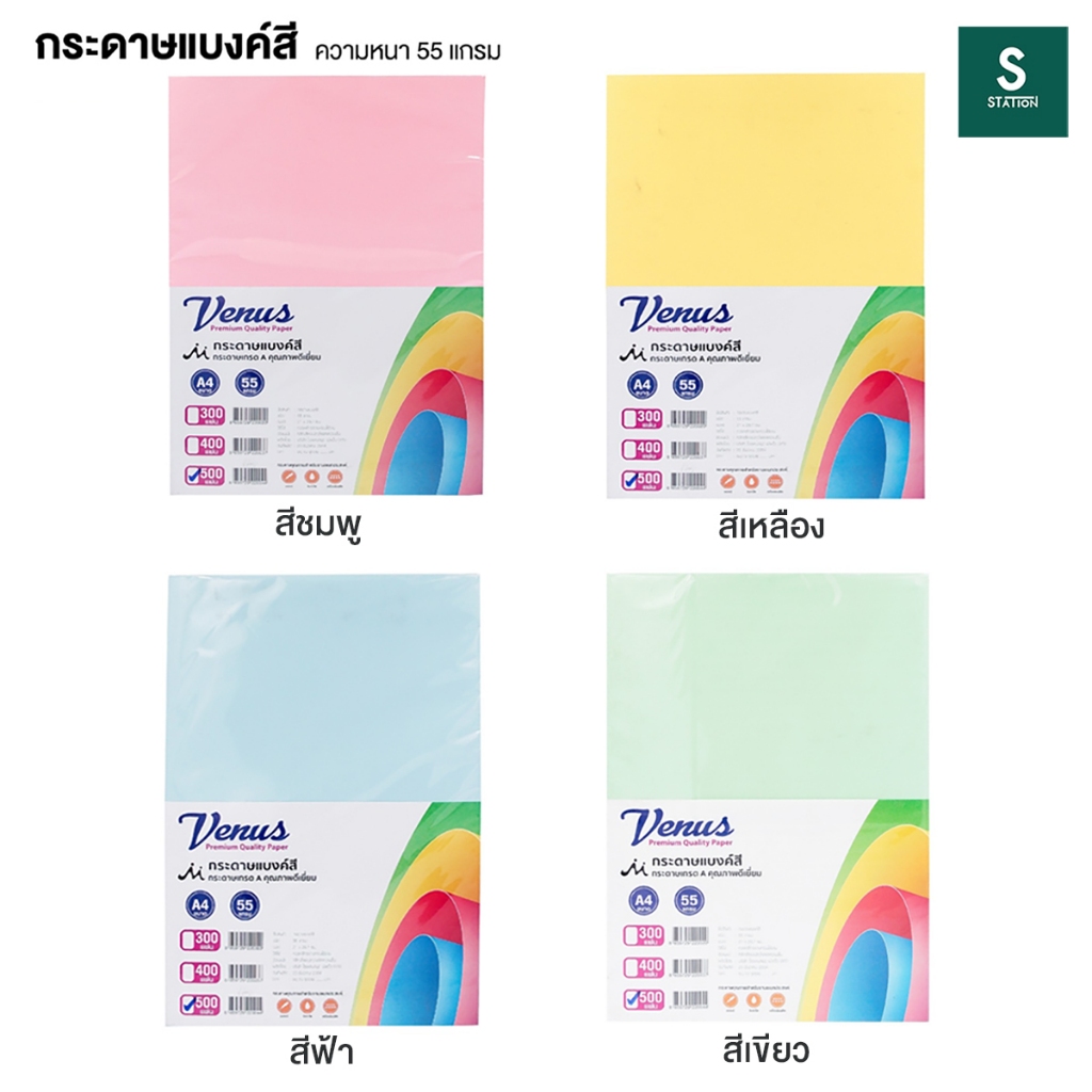 [แพ็ค 500 แผ่น] กระดาษแบงค์สี A4 หนา 55 แกรม VENUS สำหรับใช้ พิมพ์บิลต่างๆ ใบปลิว วีนัส กระดาษเกรด A