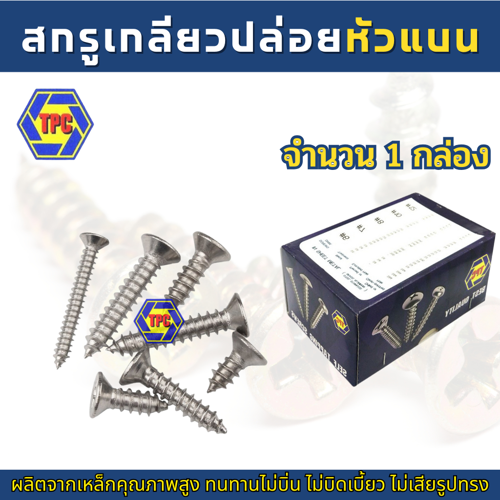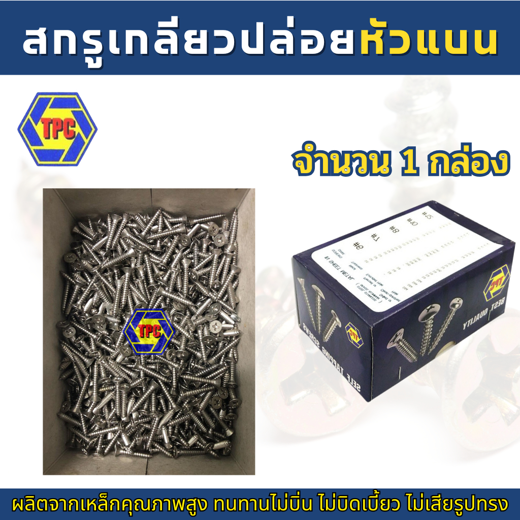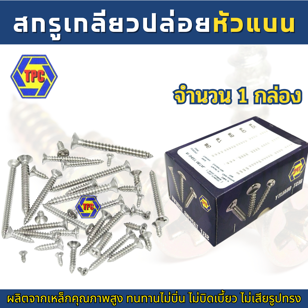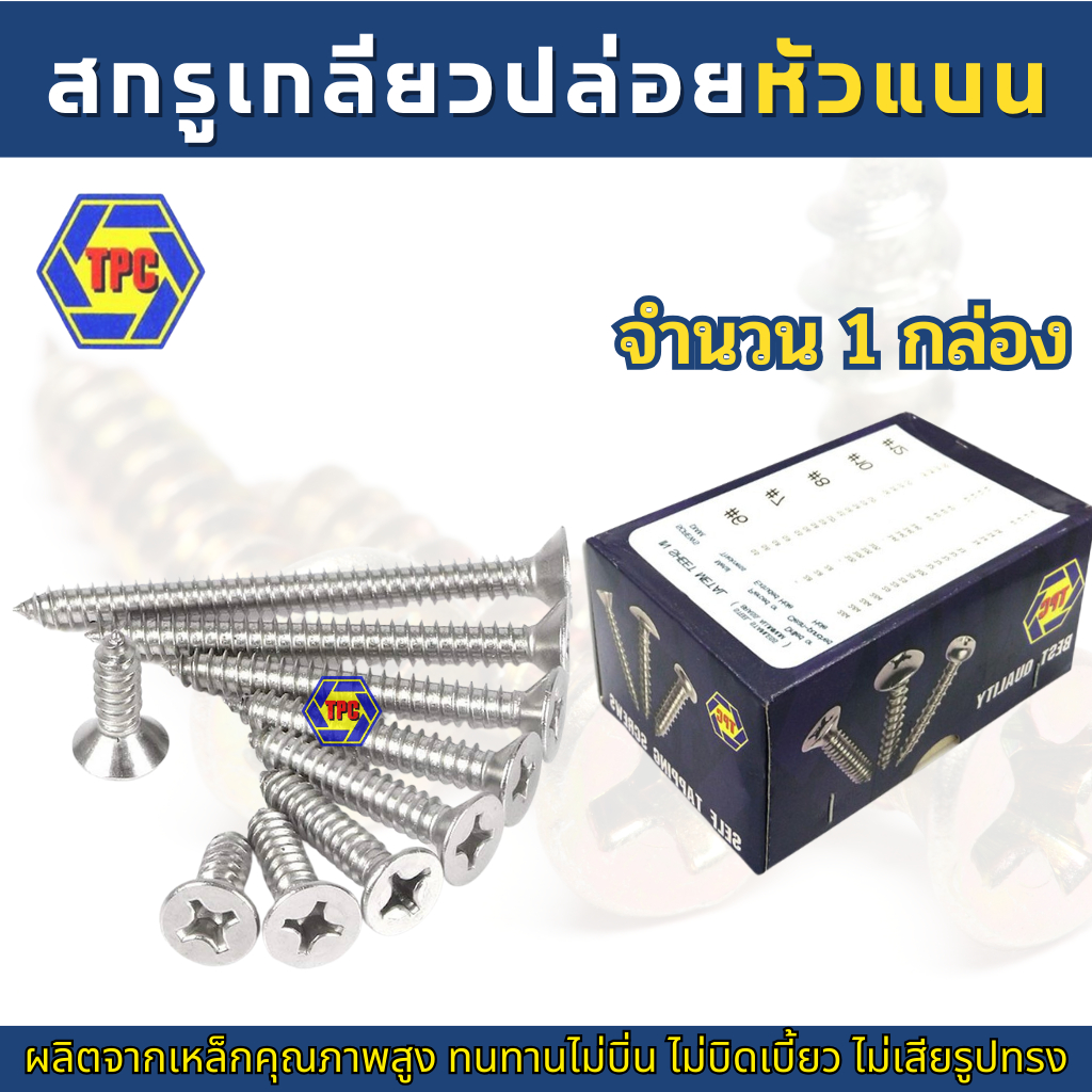 (1กล่อง) สกรูเกลียวปล่อยหัวแบน FH (น้อตเบอร์7) TPC