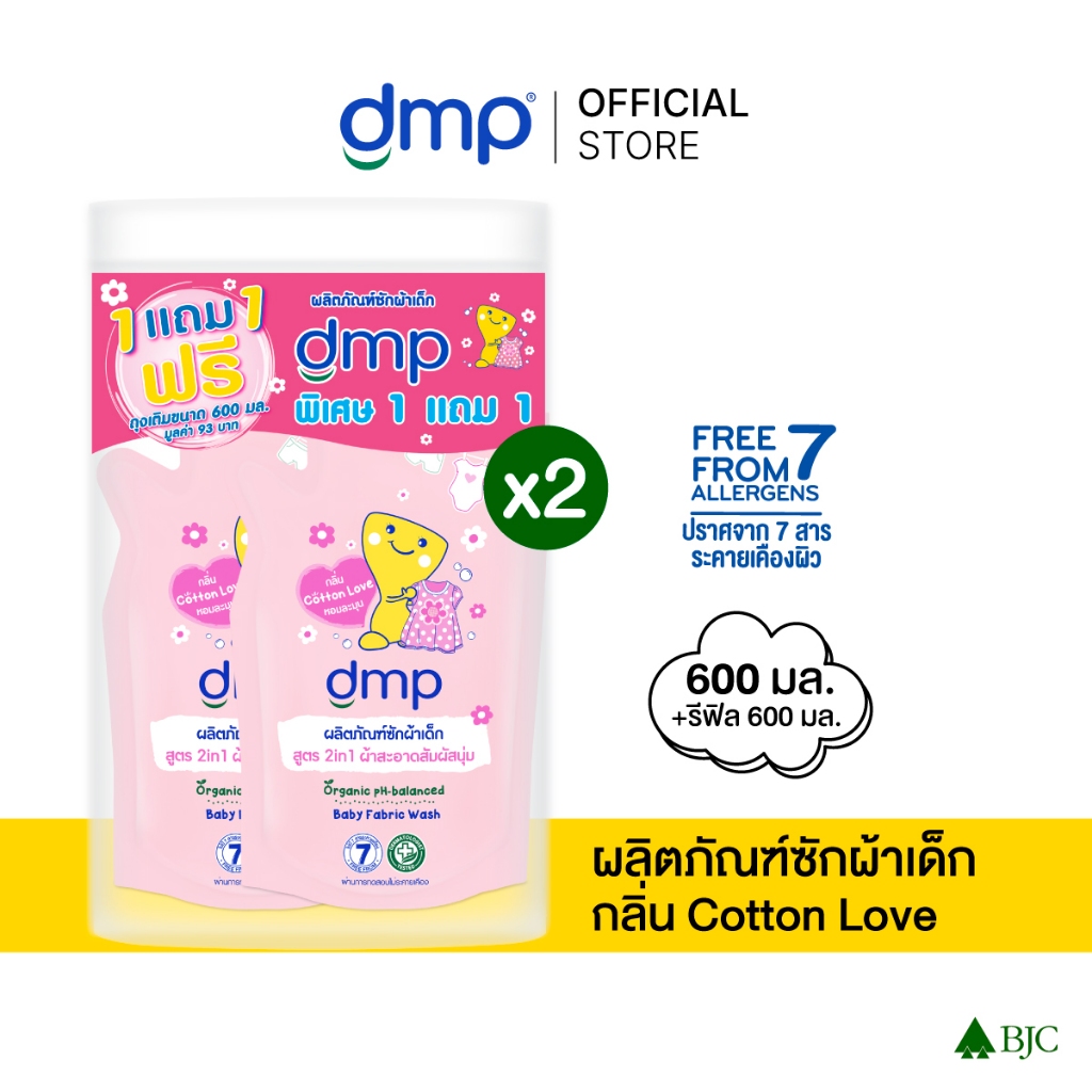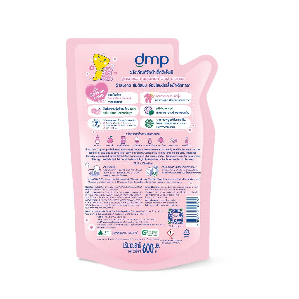 dmp ดีเอ็มพี ทูอินวัน ถุง 600 + 600 มล. Dmp 2In1 Organic Ph-Balanced Baby Fabric Wash 600ML+600ML น้ำยาซักผ้าเด็ก