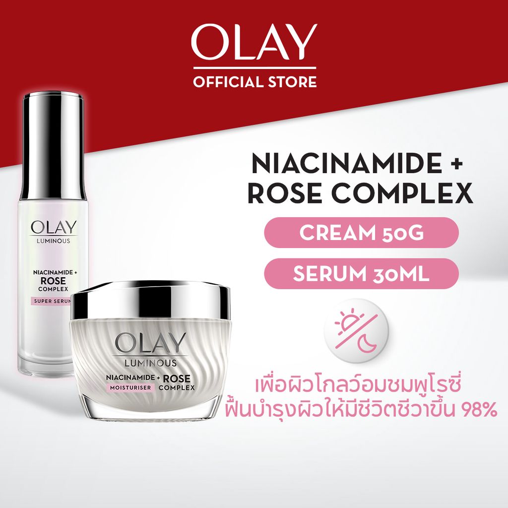 [แพ็คคู่] OLAY โอเลย์ ลูมินัส ไนอะซินาไมด์ โรสคอมเพล็กซ์ครีม50ก + เซรั่ม30มล Luminous NiacinamideRose ComplexCream+Serum