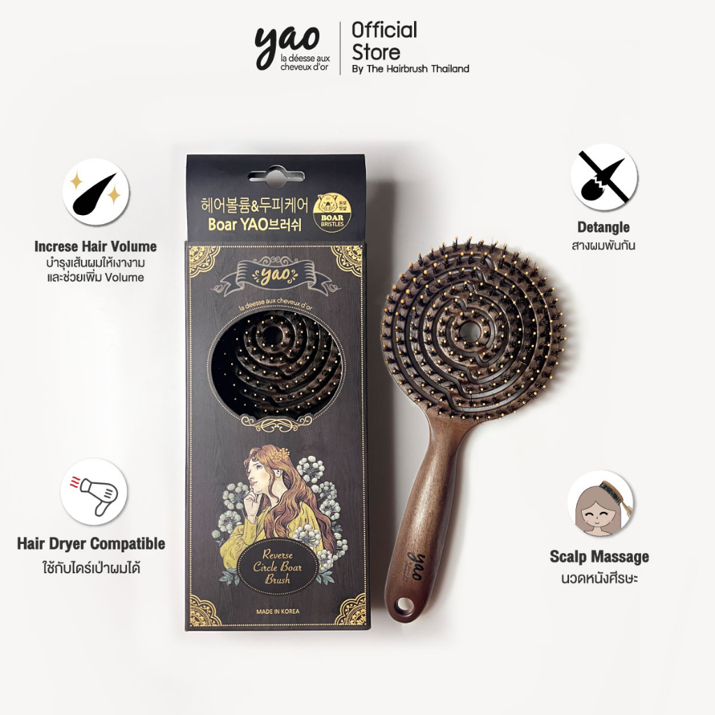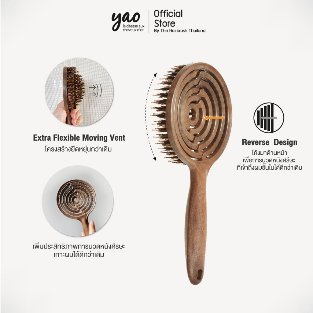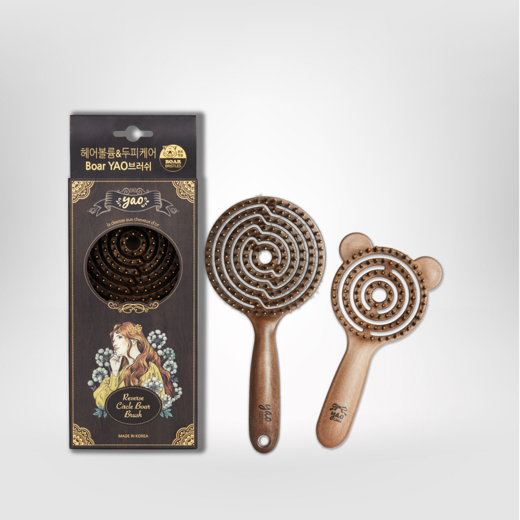 Yao Volumizer Set เซ็ตเพื่อผมเงางามมีน้ำหนัก Reverse Circle Boar Brush + Little Teddy Boar Brush