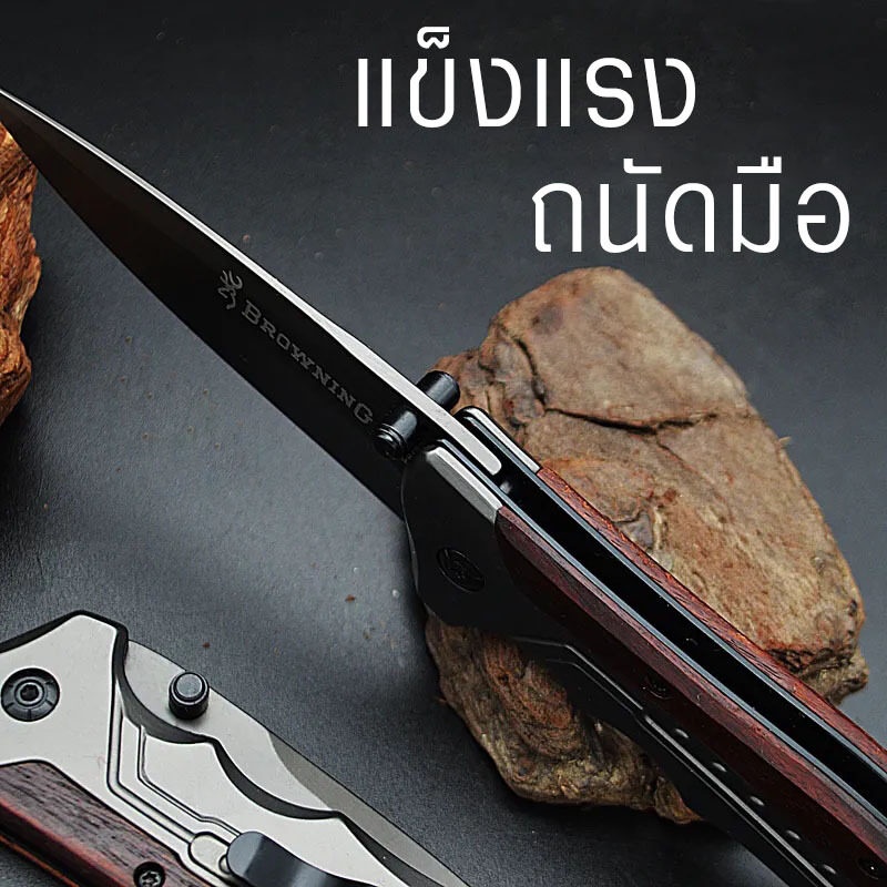 มีดพับพกพา 22cm มีดพับเดินป่าคมๆ ใช้สำหรับตั้งแคมป์ พร้อมที่หนีบBrowning High Hardness Folding Pocket Knife