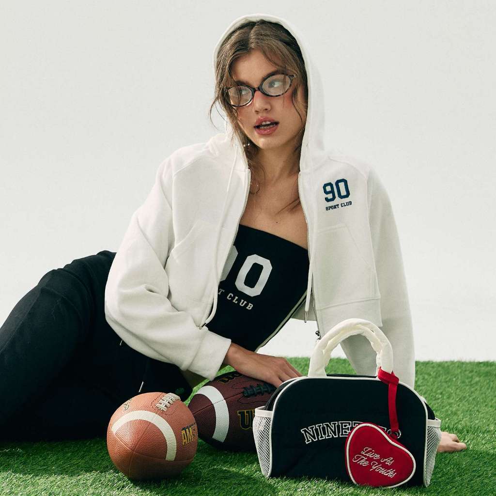 Nineties Design : Sport Club เสื้อสเวตเตอร์ครอป มีฮู้ด รุ่น Fighting