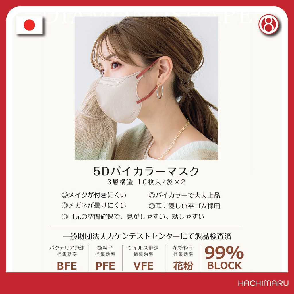 หน้ากากอนามัย Cicibella 5D Bi-Color Mask 10 ชิ้น นำเข้าจากญี่ปุ่น