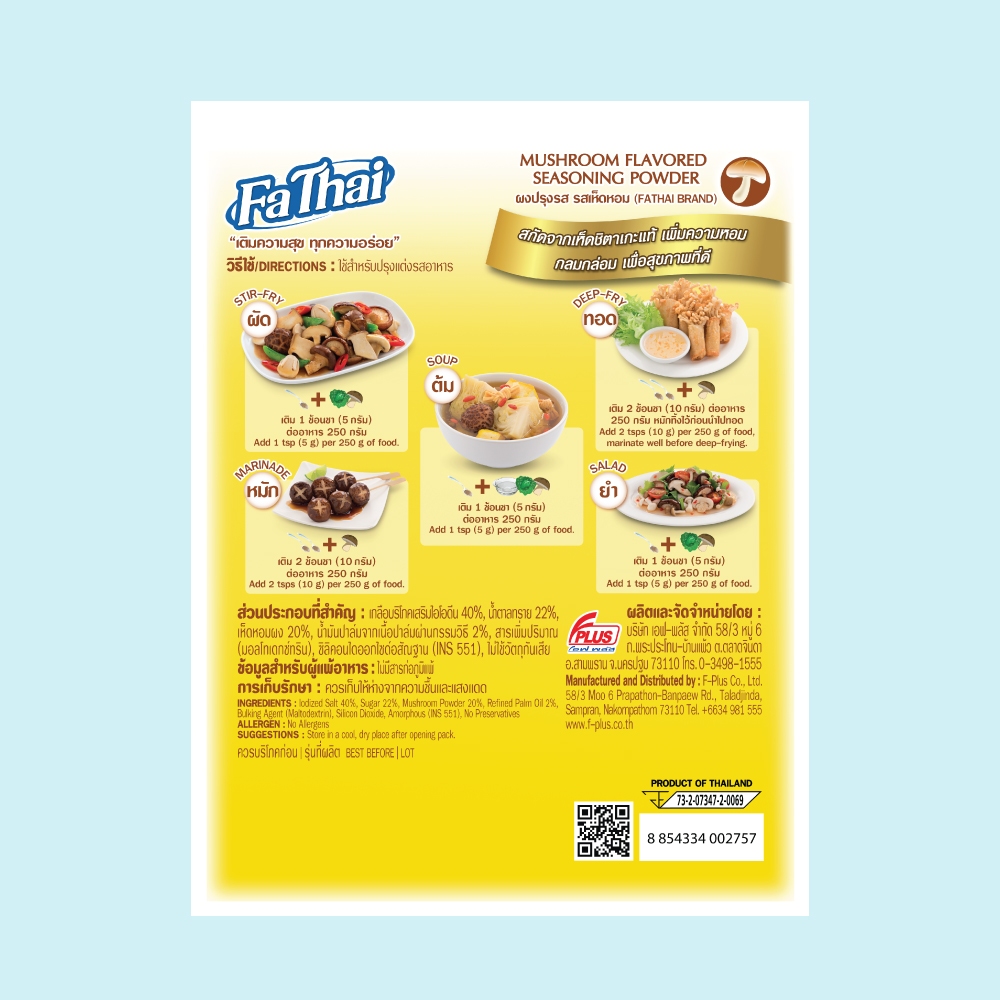 FaThai ฟ้าไทย ผงปรุงรส รสเห็ดหอม 165 กรัม (1 ซอง)