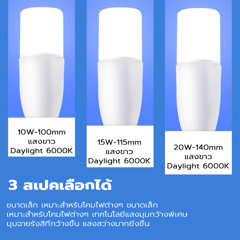 หลอดไฟ Led ขั้ว E27 10W 15W 20W ทรงกระบอก แอลอีดี ประหยัดพลังงานสีขาว สําหรับตกแต่งบ้าน ถนอมสายตา