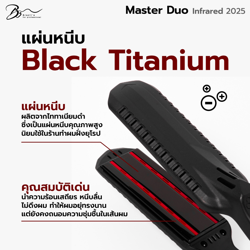Dual Infrared Black Titanium 1.5" ที่หนีบ บราซิลอินฟาเรดเส้นคู่มี มอก.รับประกัน1ปีเหมาะกับผมเสีย