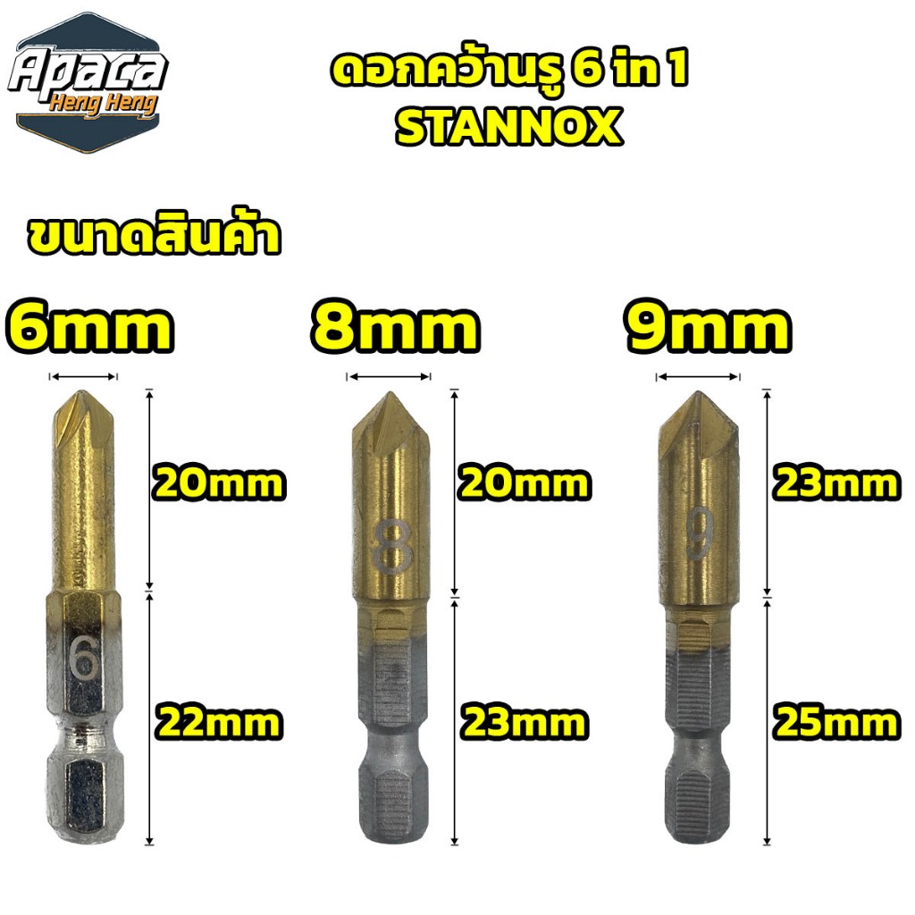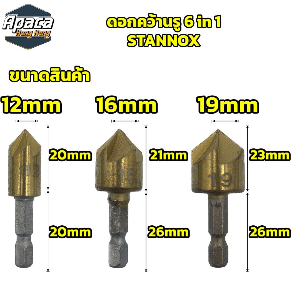 ดอกคว้านรู 6 in 1 6mm - 19 mm STANNOX ชุดดอกผายรู ดอกเจาะผาย แกนหกเหลี่ยม สวมเร็ว ซ่อนหัวน็อต สกรู สำหรับ งานไม้ พลาสติก