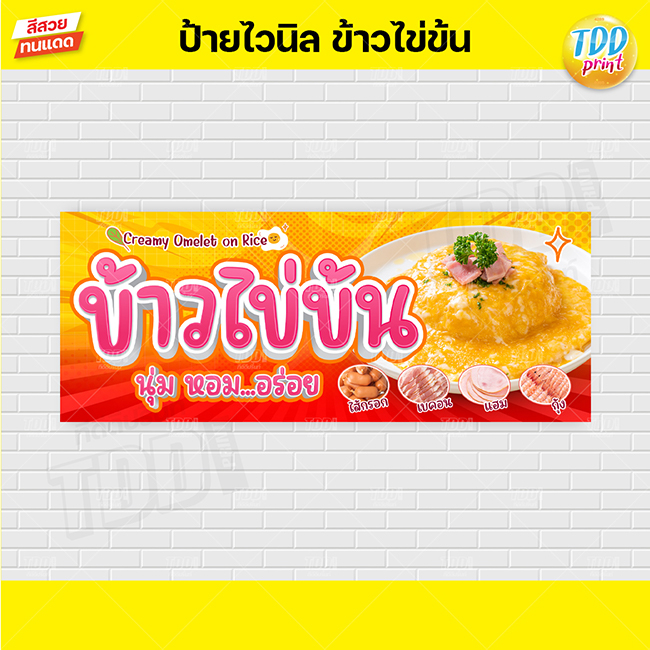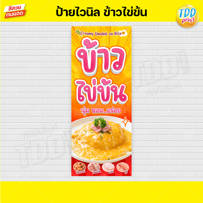 ป้ายไวนิลข้าวไข่ข้นV1 ป้ายทนแดด กันน้ำ ภาพคมชัด สีสวยสดใส พร้อมใช้งาน