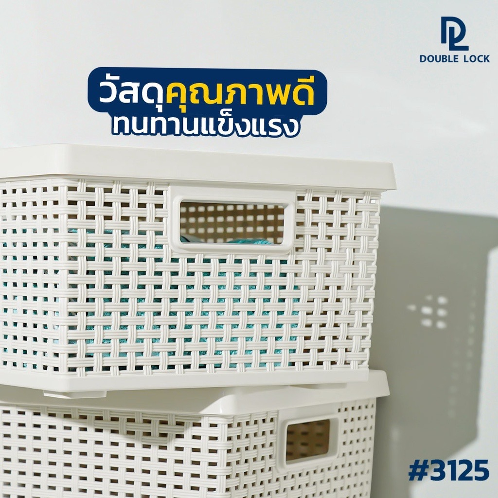 Double Lock ตะกร้าพลาสติกมีฝาปิดลายหวายเก็บของอเนกประสงค์ รุ่น 3125(2)