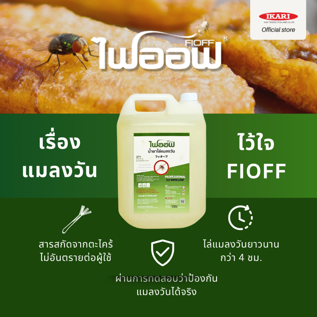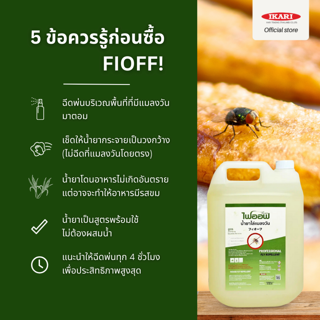 FIOFF น้ำยาไล่แมลงวัน (แกลลอน 5 ลิตร) สารสกัดธรรมชาติ กลิ่นตระไคร้หอม : ปกป้องไล่แมลงวันยาวนานมากกว่า 4 ชม.
