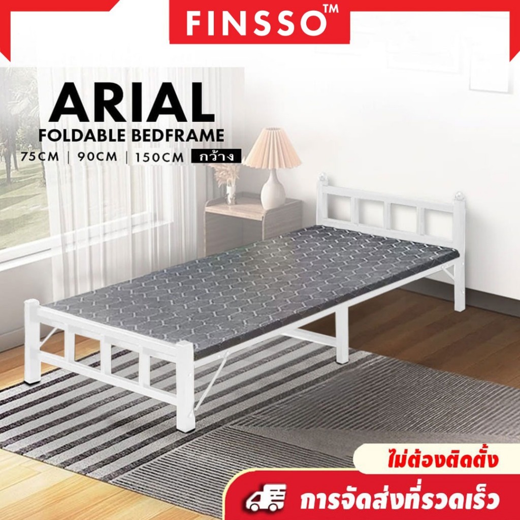 🚚พร้อมส่ง FINSSO : เตียงนอน เตียงเหล็ก พับเก็บได้ ใช้ง่าย สะดวก ( Fordable Steel Bed Frame/ARIAL)