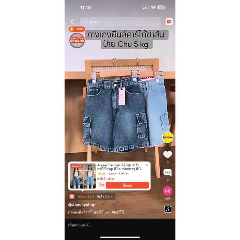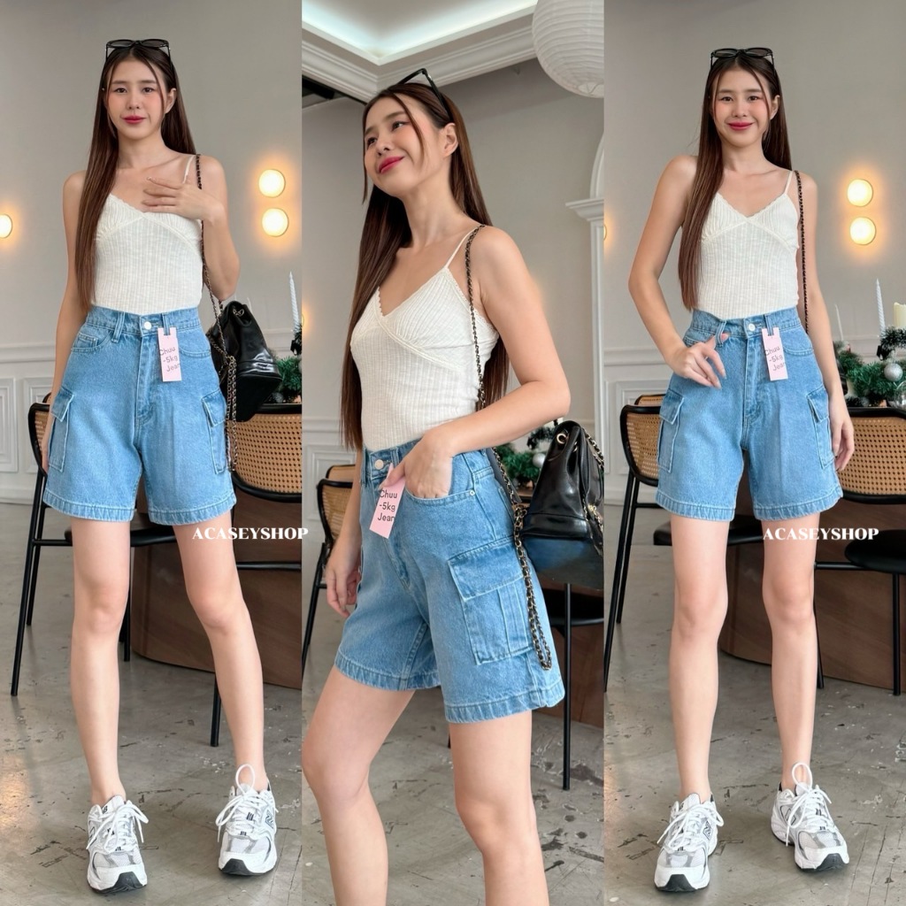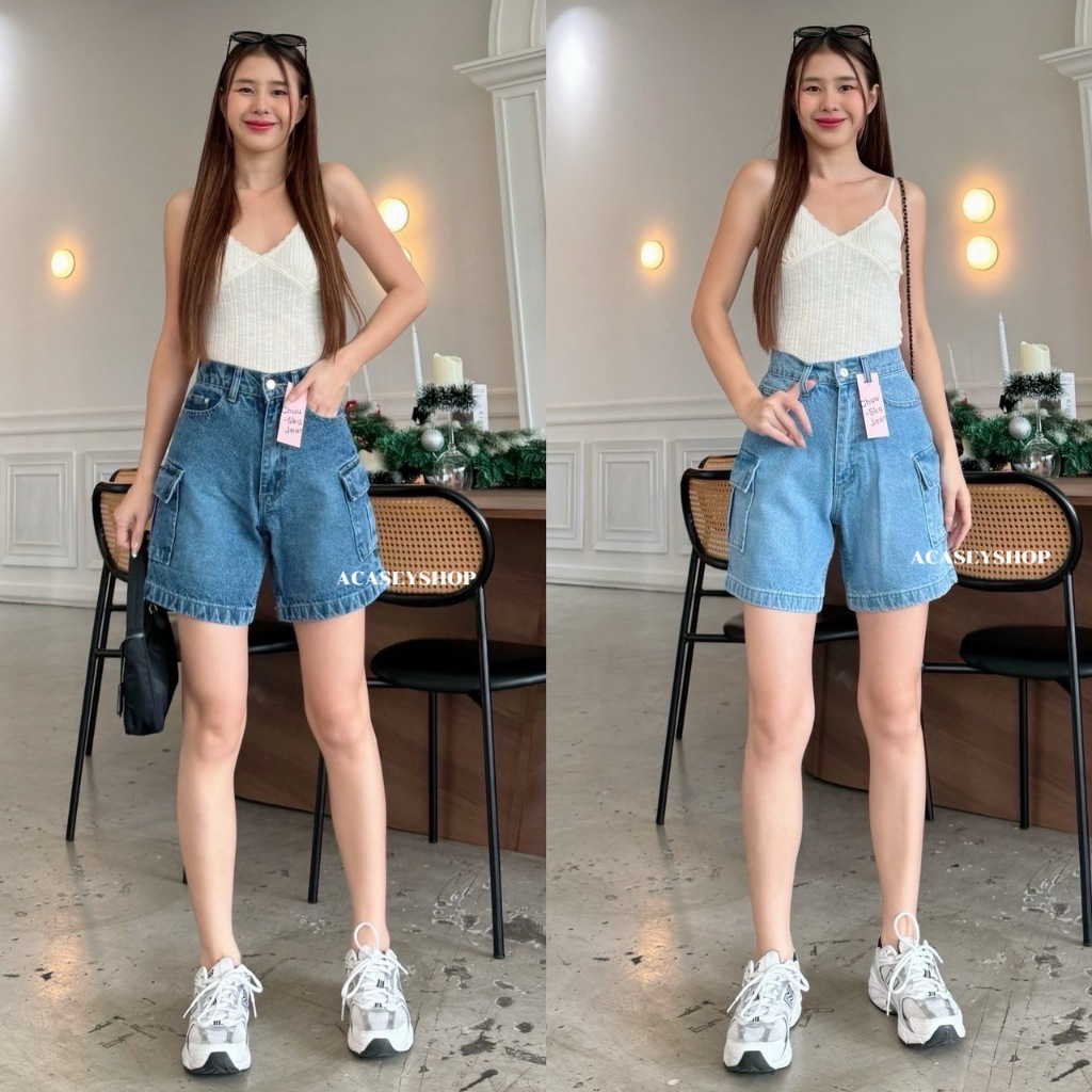 Acasey กางเกงยีนส์ผู้หญิง ขาสั้นคาร์โก้เอวสูง สีใหม่ ฟอกสวยๆ ผ้าไม่ยืด ไซส์ S - XL พร้อมส่ง