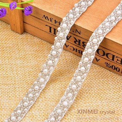1yards DIY Party Accessories ไข่มุกลูกปัดลูกไม้ trim ชุดแต่งงานผ้าเสื้อผ้าเข็มขัด