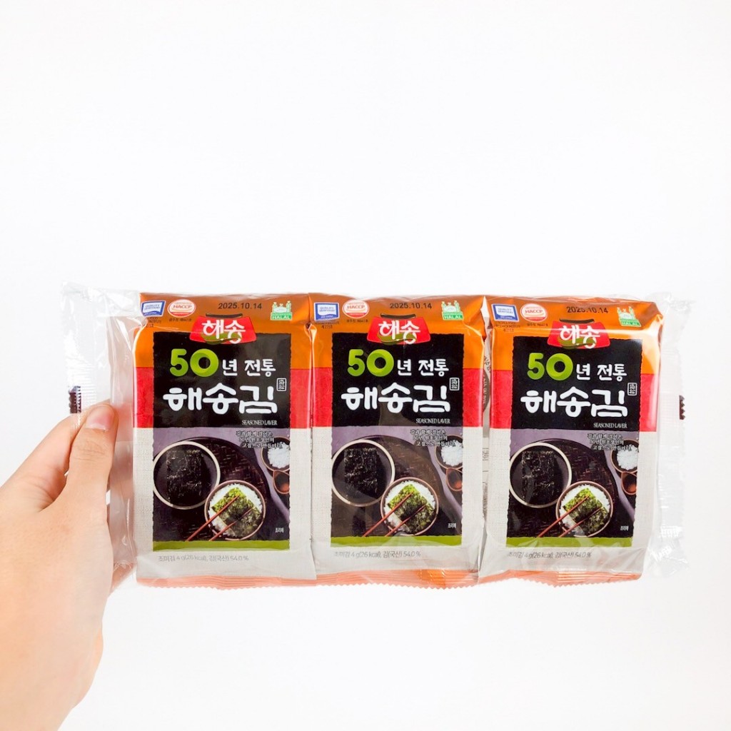 สาหร่ายเกาหลี 3 ห่อ 6 ห่อ 9 ห่อ KOREA SEAWEED นำเข้าจากเกาหลี ของแท้ 100% 해송 김 สาหร่ายอบปรุงรส