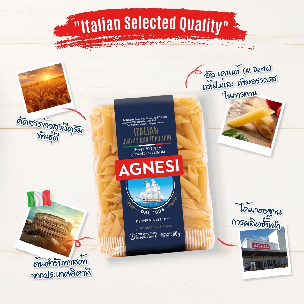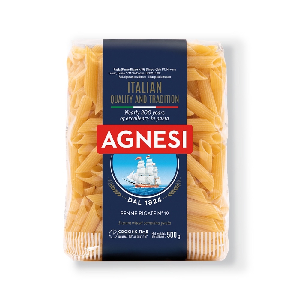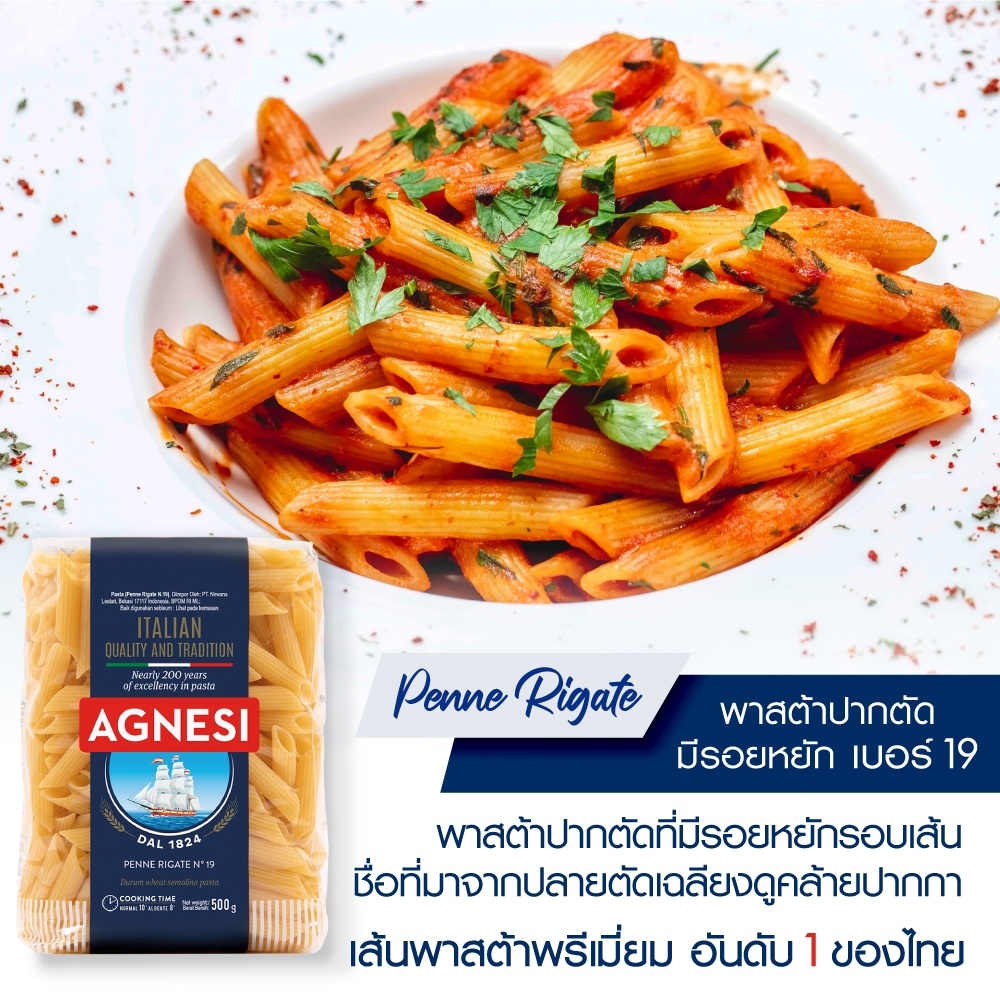 แอคเนซี เพนเน่ ริกาเต้ เบอร์ 19 (พาสต้าปากตัดมีรอยหยัก เบอร์ 19) 500 กรัม │ Agnesi Penne Rigate No.19 500 g
