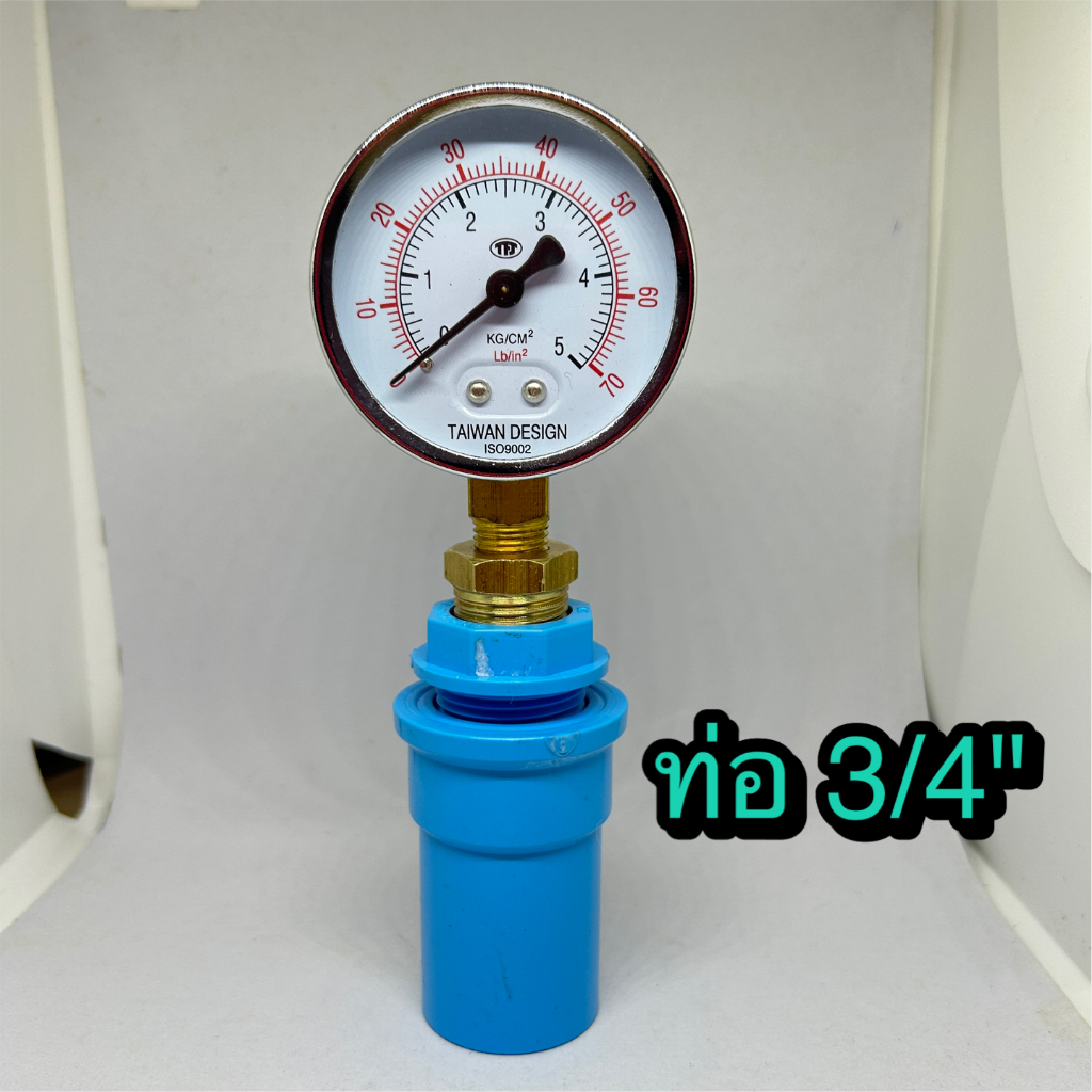 Pressure gauge 5 kg/cm2 เกจวัดแรงดันน้ำ รวมชุดข้อต่อตรง 3/4" สำหรับปั๊มน้ำและเครื่องกรองน้ำ