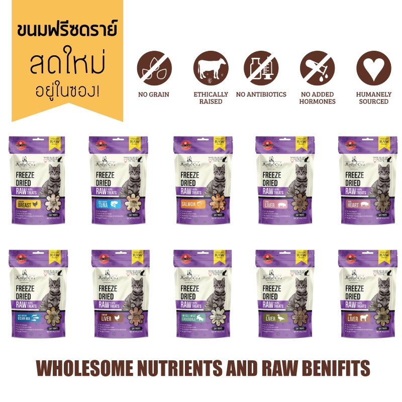 (แมว) Kelly & Co's - Freeze Dried Raw 100% เคลลี่แอนด์โค ซิงเกิ้ลทรีทส์ ขนมฟรีซดราย สำหรับแมว