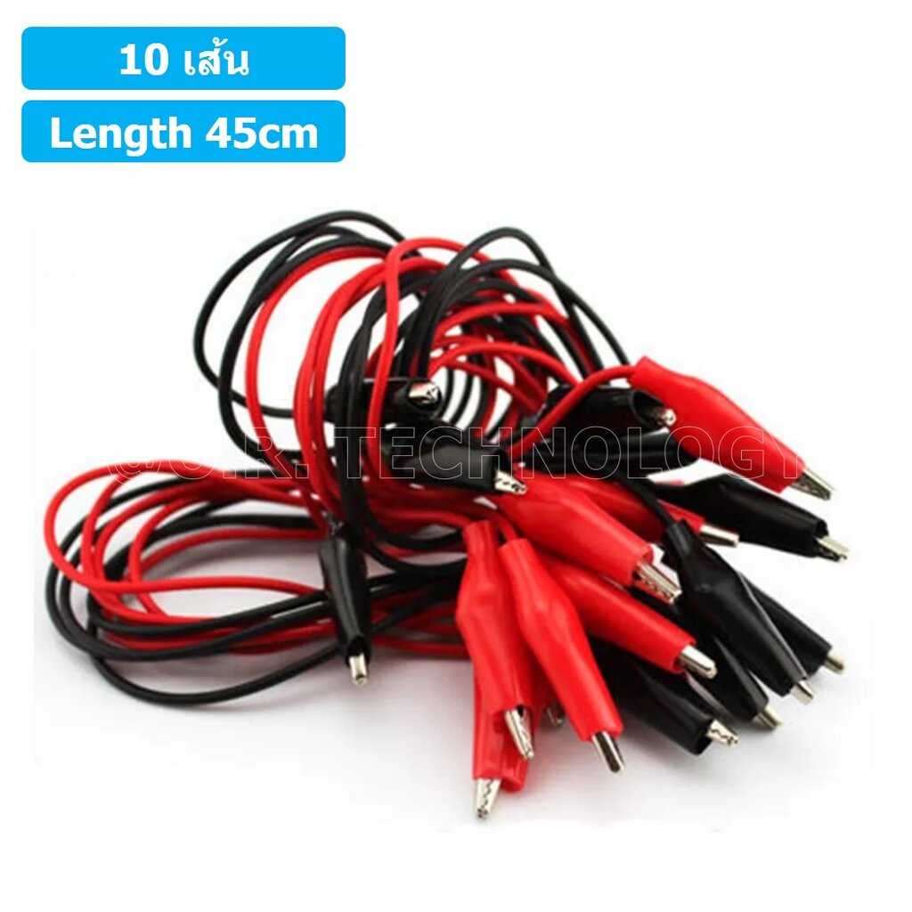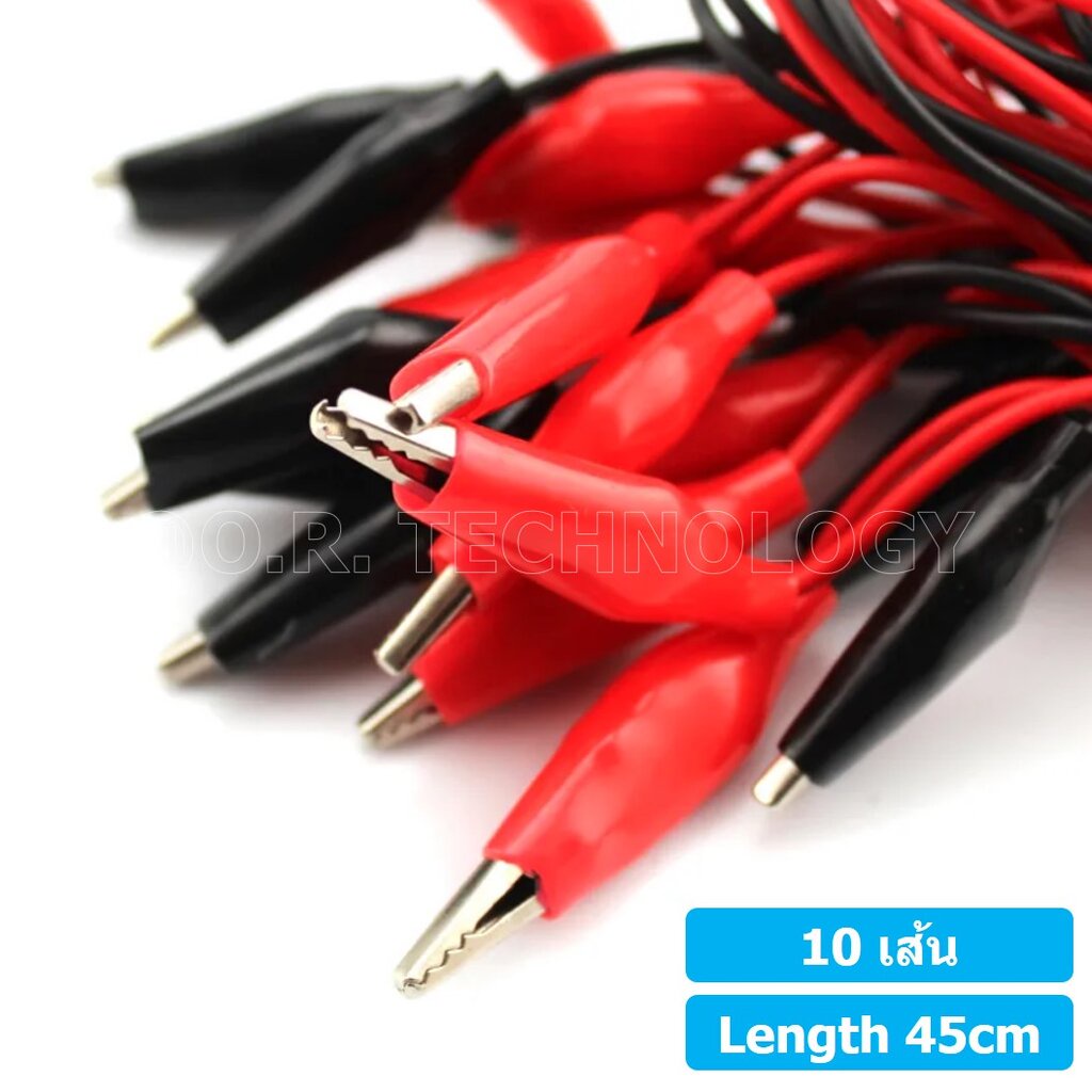 (1ชุด) ชุดสายปากคีบ สายคีบ 10 เส้น แบบ ดำ-แดง Alligator Clip ยาว 45cm สายปากจระเข้ สายจัมเปอร์ ปากคีบ