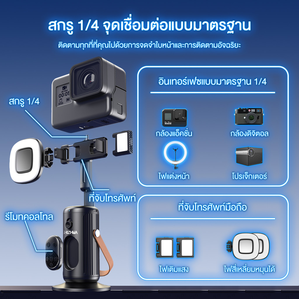 【Shizhua ของแท้】ถ่ายภาพอัจฉริยะ Gimbal Selfie 360° Rotation Auto Face TRACKING รีโมทควบคุมในตัว ไฟเสริมคู่แบบถอดได้