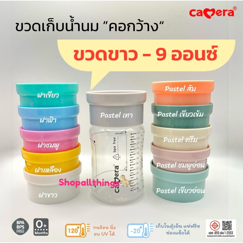 [มี มอก.] CAMERA ขวดเก็บน้ำนม คอกว้าง AKA ฝาพาสเทล 5 ออนซ์ และ 9 ออนซ์ แช่แข็งได้ ทนร้อน นึ่งอบ UV ได้