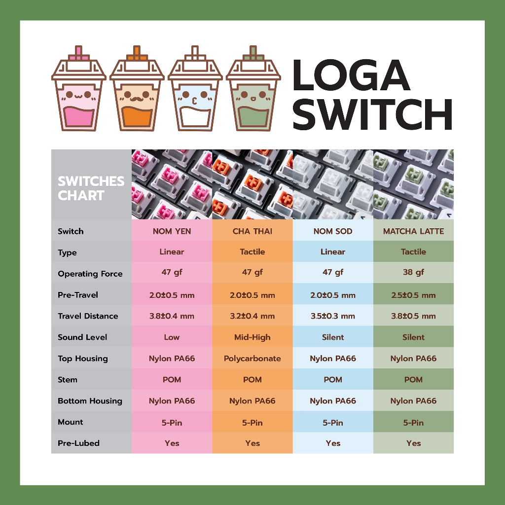 สวิตช์ LOGA 35 PCS MECHANICAL SWITCHES : NOMYEN นมเย็น / CHATHAI ชาไทย / NOMSOD นมสด