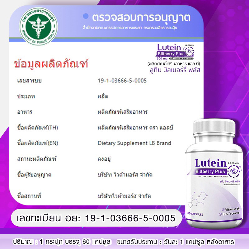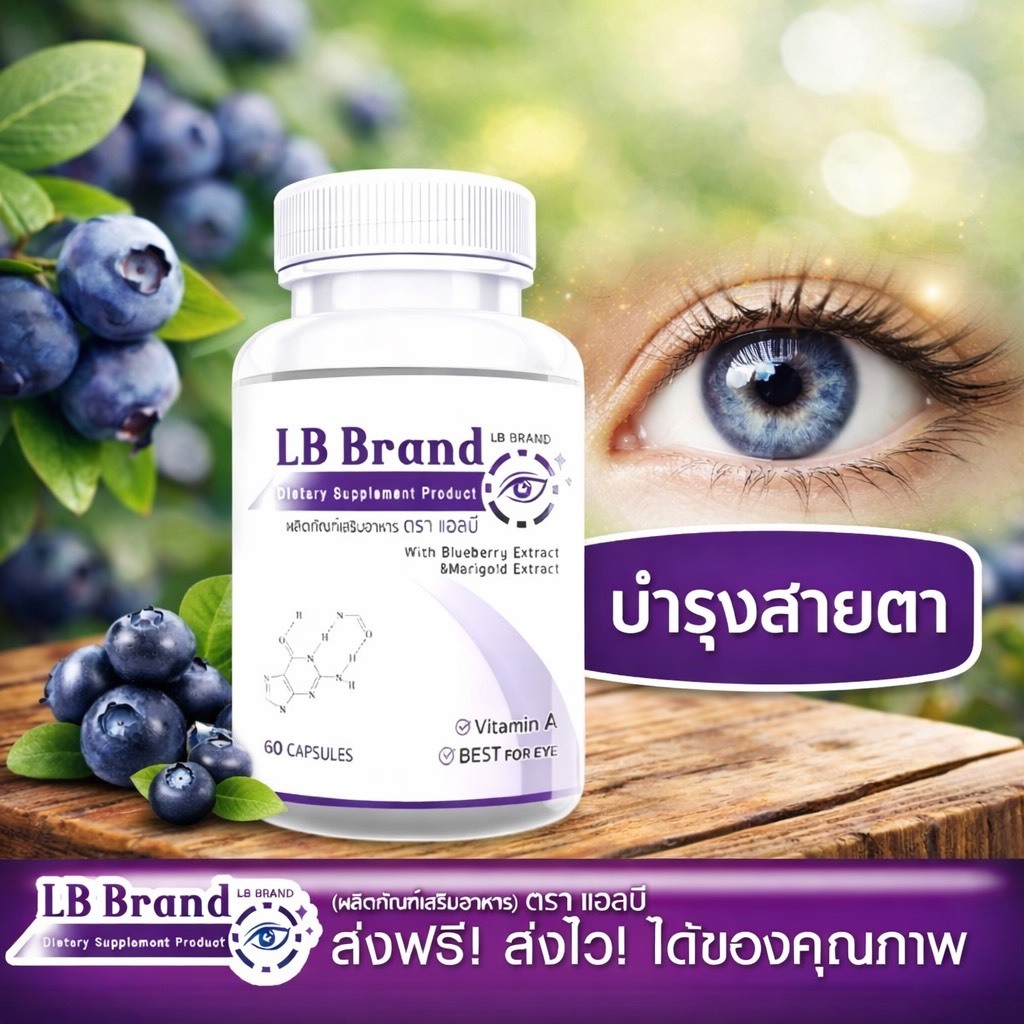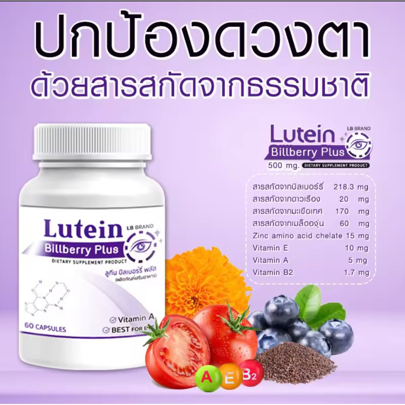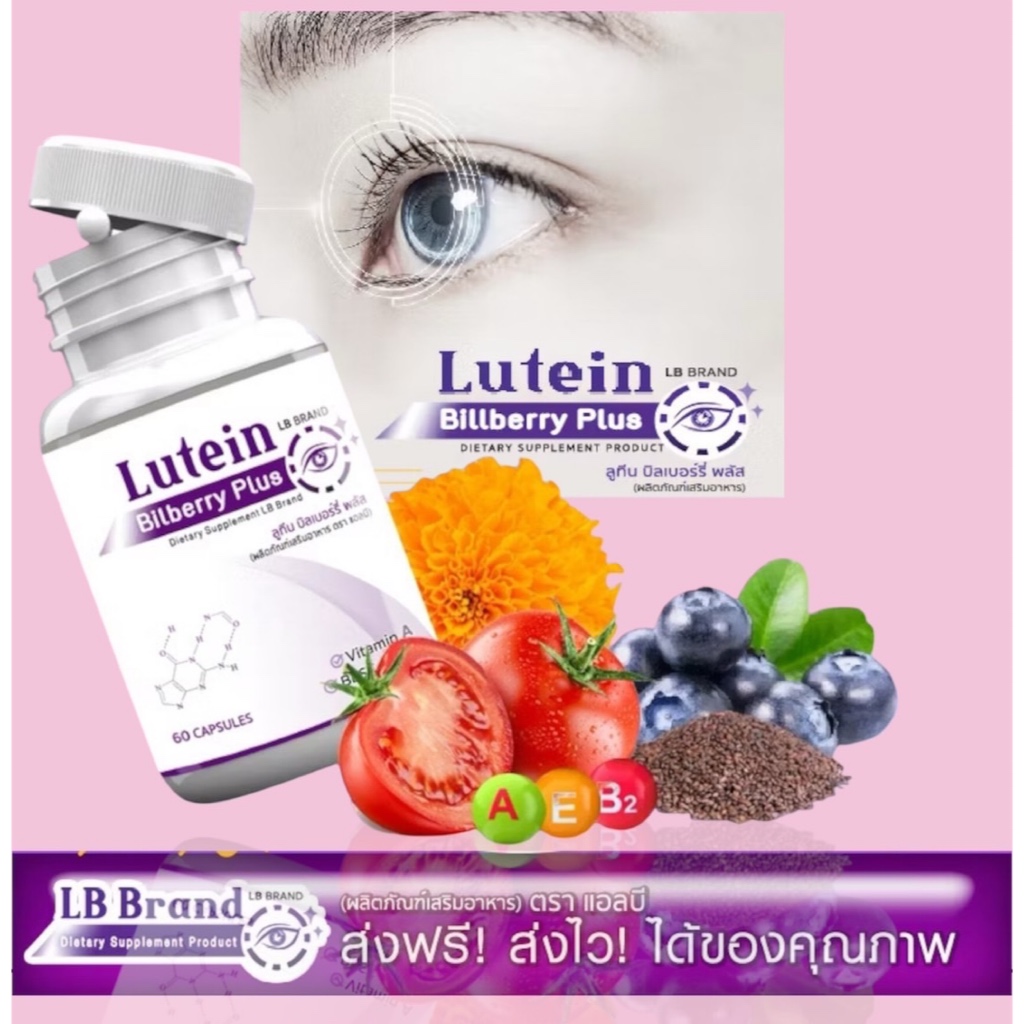 Lutein อาหารเสริมบำรุงสายตา บำรุงดวงตา แพ๊กคู่สุดคุ้ม 196 วิตามิน สารสกัดจากบิลเบอร์รี่ 60 แคปซูล LB band