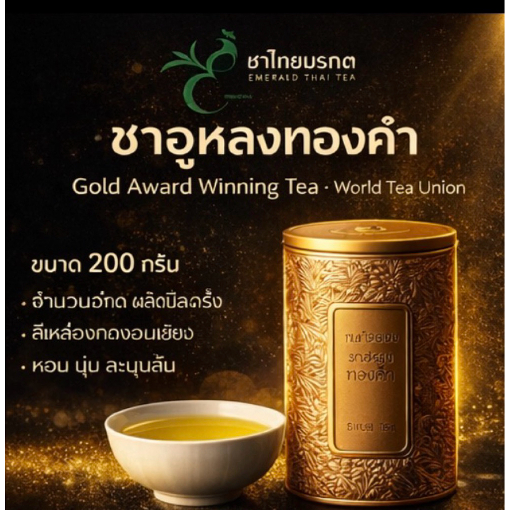 ชาอูหลงทองคำ รางวัลเหรียญทองระดับโลก ขนาด 200 กรัม ตราชาไทยมรกต ใบชาดอยแม่สลอง