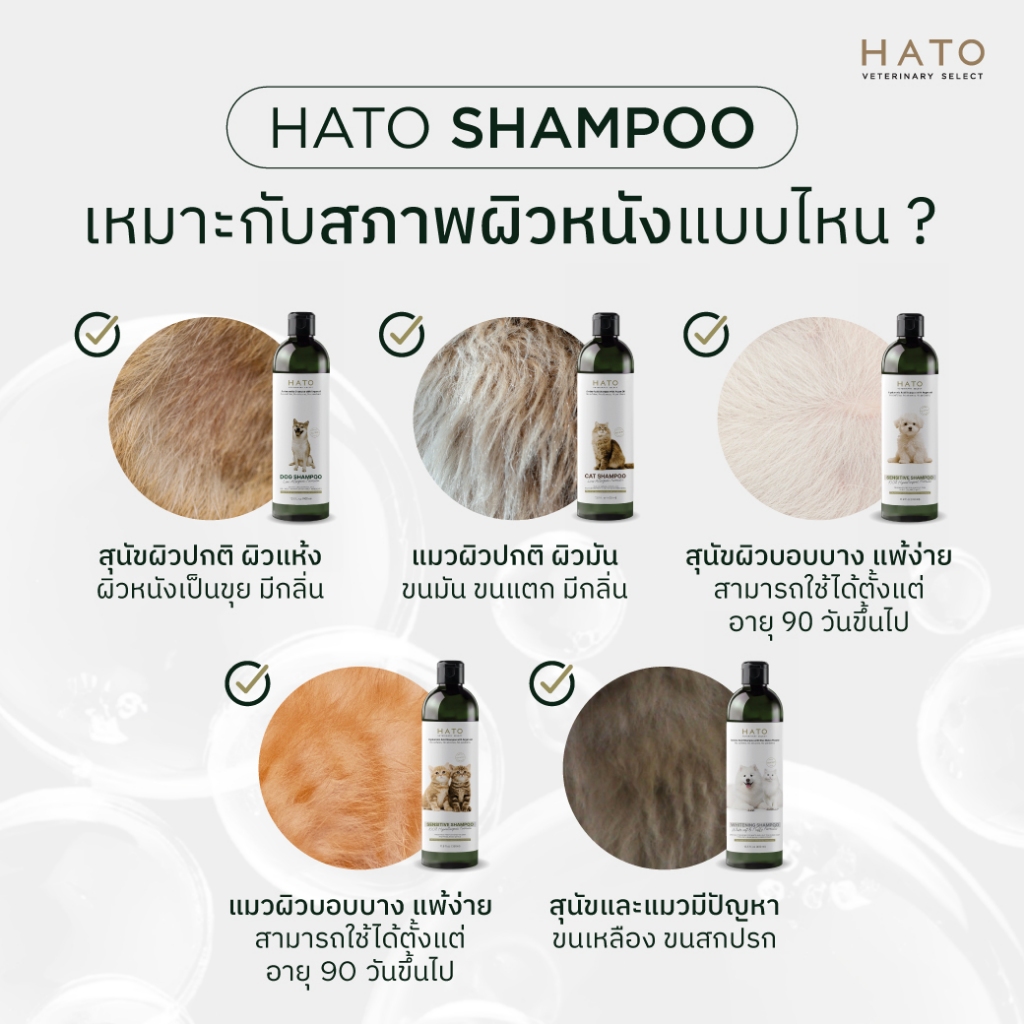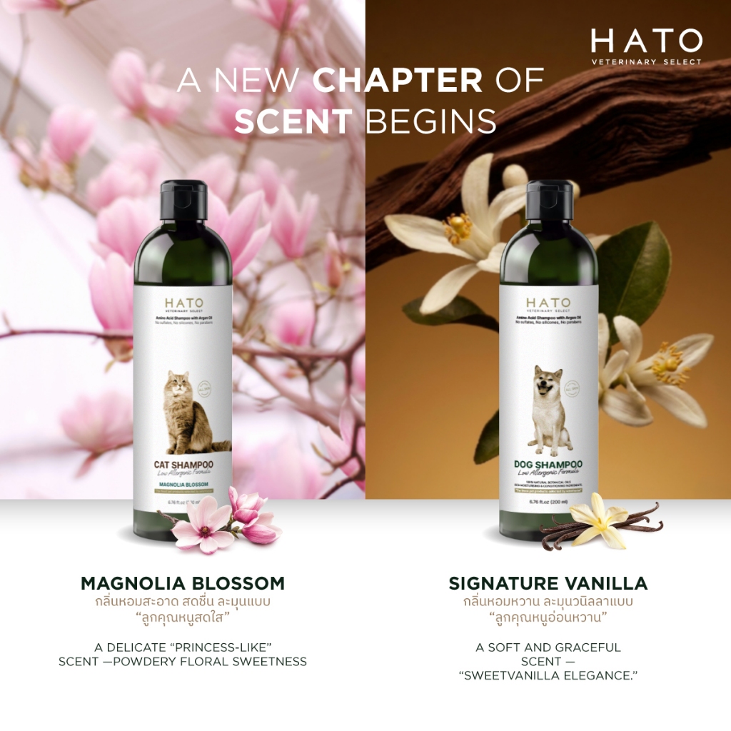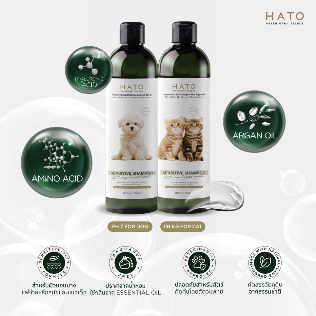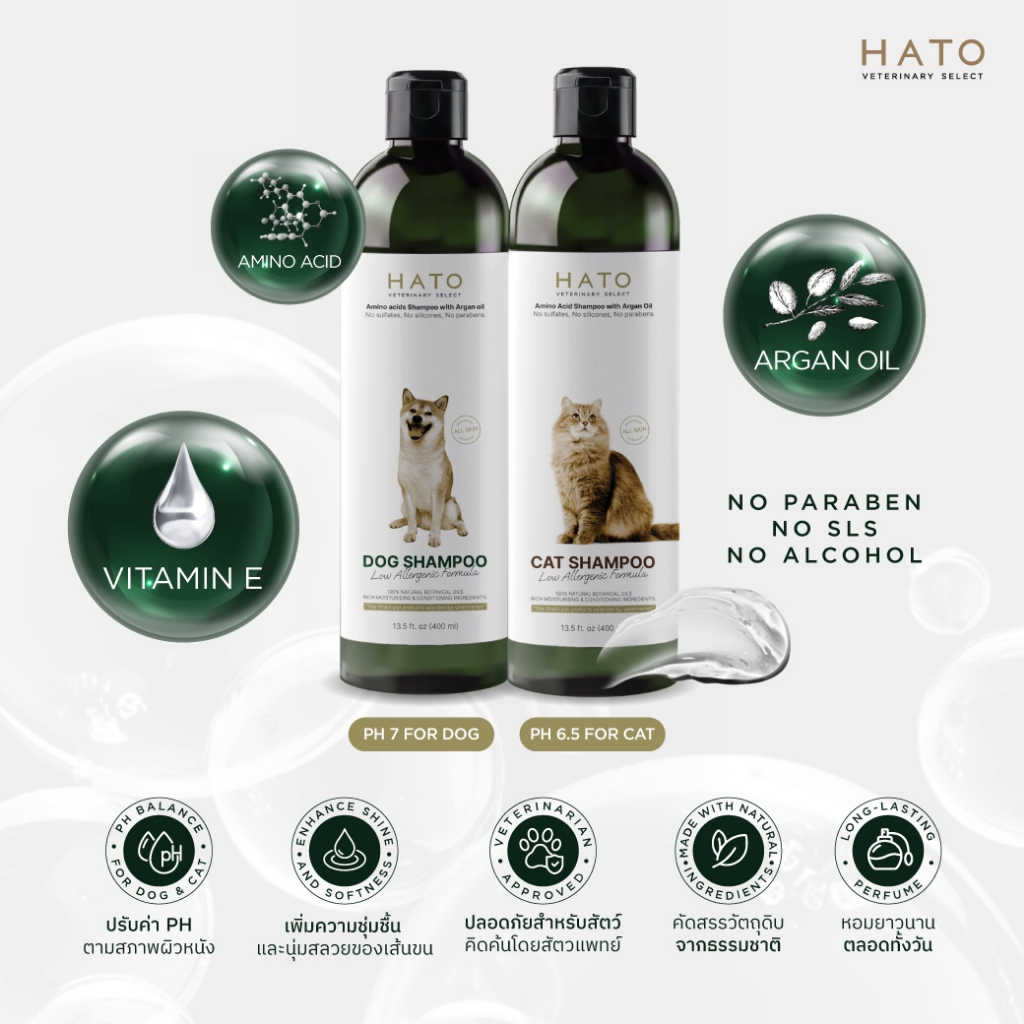 𝗛𝗔𝗧𝗢 𝗦𝗛𝗔𝗠𝗣𝗢𝗢 แชมพูสุนัข และแมว ส่วนประกอบจากธรรมชาติ 99.3% / ขนาด 200-400 ML