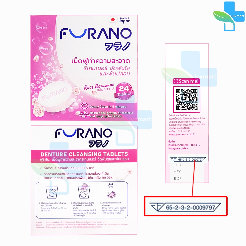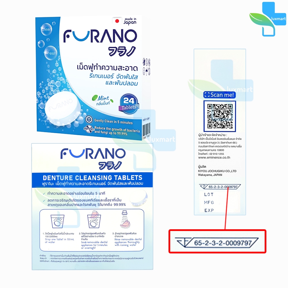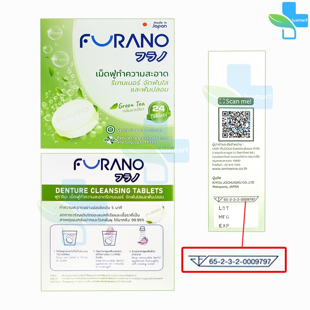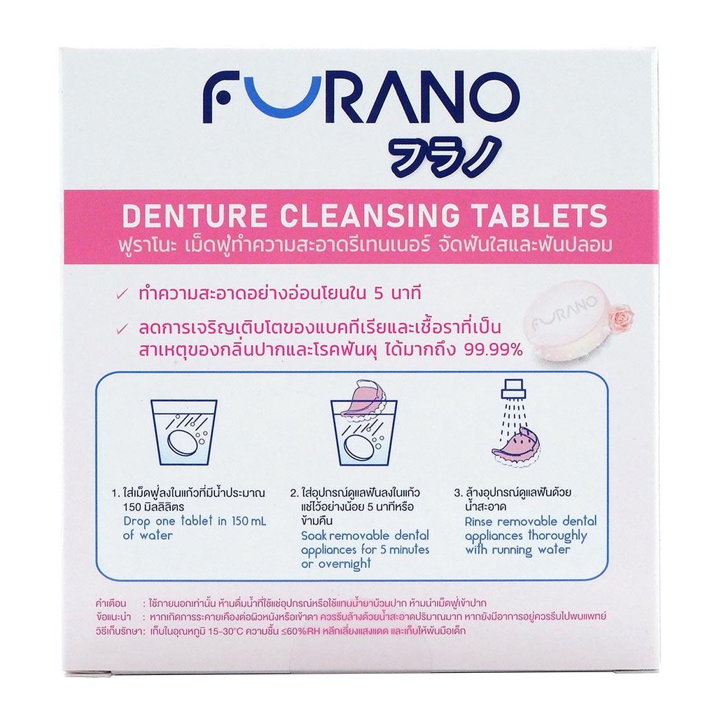Furano เม็ดฟู่ทำความสะอาด ฟันปลอมและรีเทนเนอร์ เม็ดฟู่ล้างรีเทนเนอร์ บรรจุ 24 เม็ด [1 กล่อง] CC 120X กลิ่นมิ้น,ชาเขียว,ก