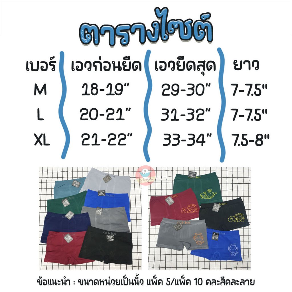 กางเกงในเด็กชาย Boxer ADDER แพ็ค 5/แพ็ค 10 กางเกงในเด็กมีขา ผ้านิ่ม กางเกงในเด็ก (AD8)