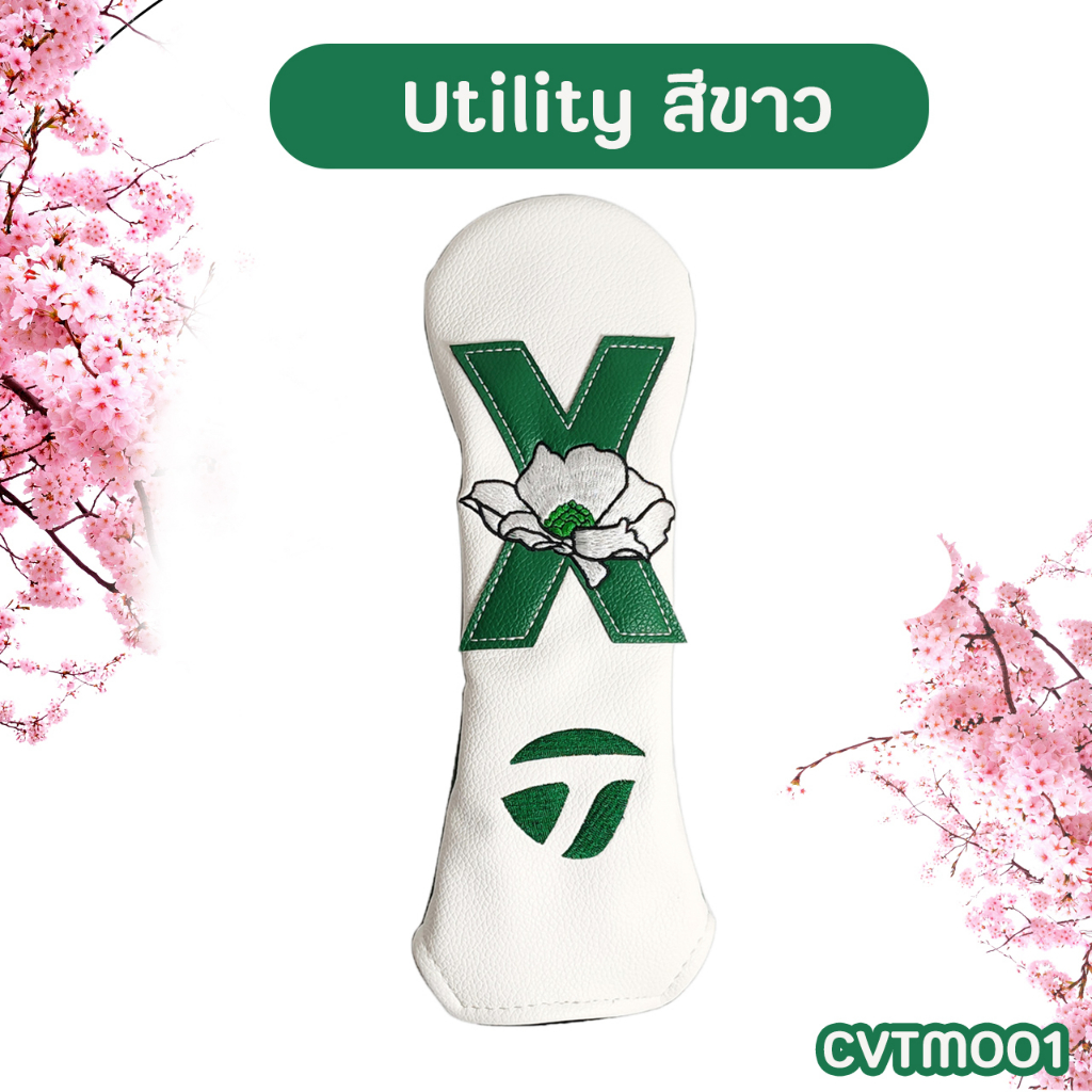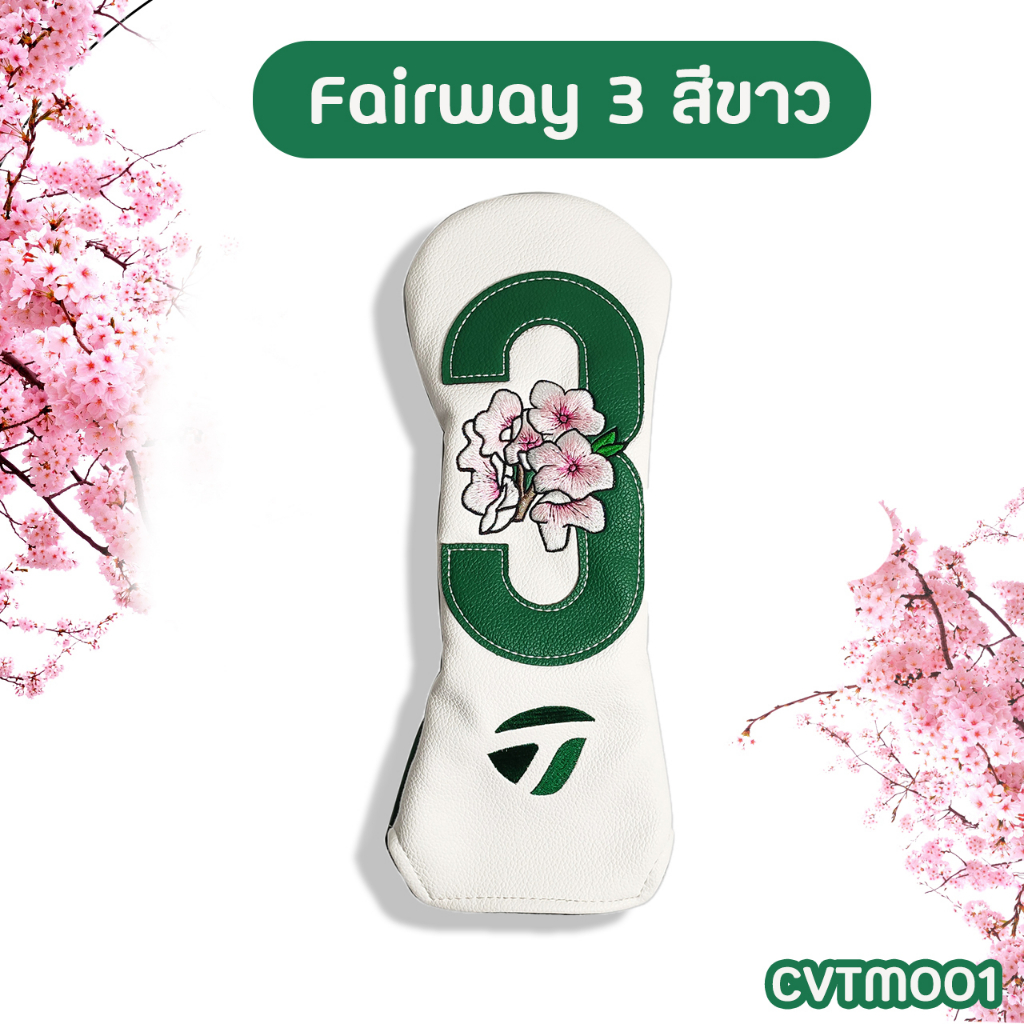 ปลอกหุ้มหัวไม้กอล์ฟ ลายดอกไม้ TM สีขาวและสีเขียว แบบ 1 ชิ้น (CVTM001) Cover Flower Green/White