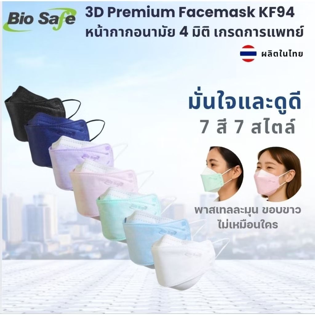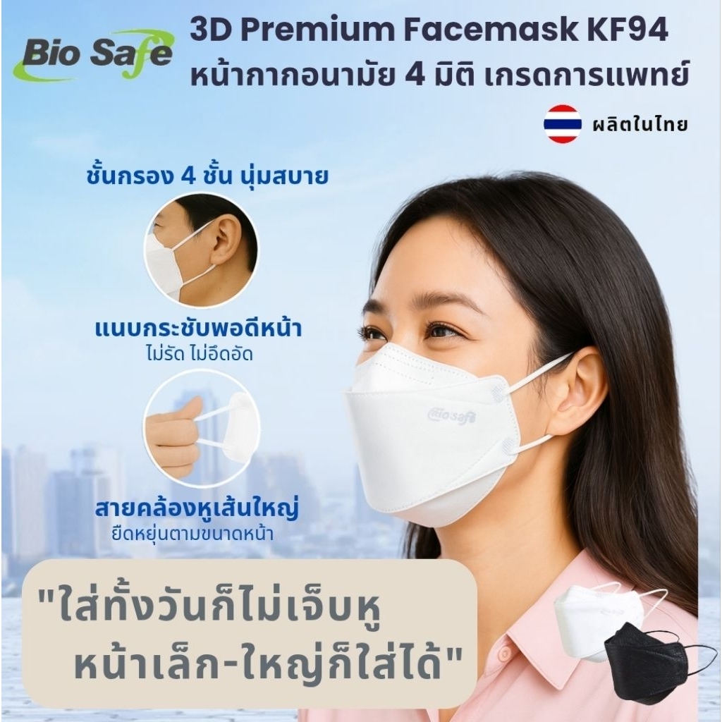 หน้ากากอนามัย 3 มิติ กันฝุ่น PM2.5 เชื้อโรค เกรดแพทย์ กล่อง 40 ชิ้น | 3 D Premium KF 94 BioSafe