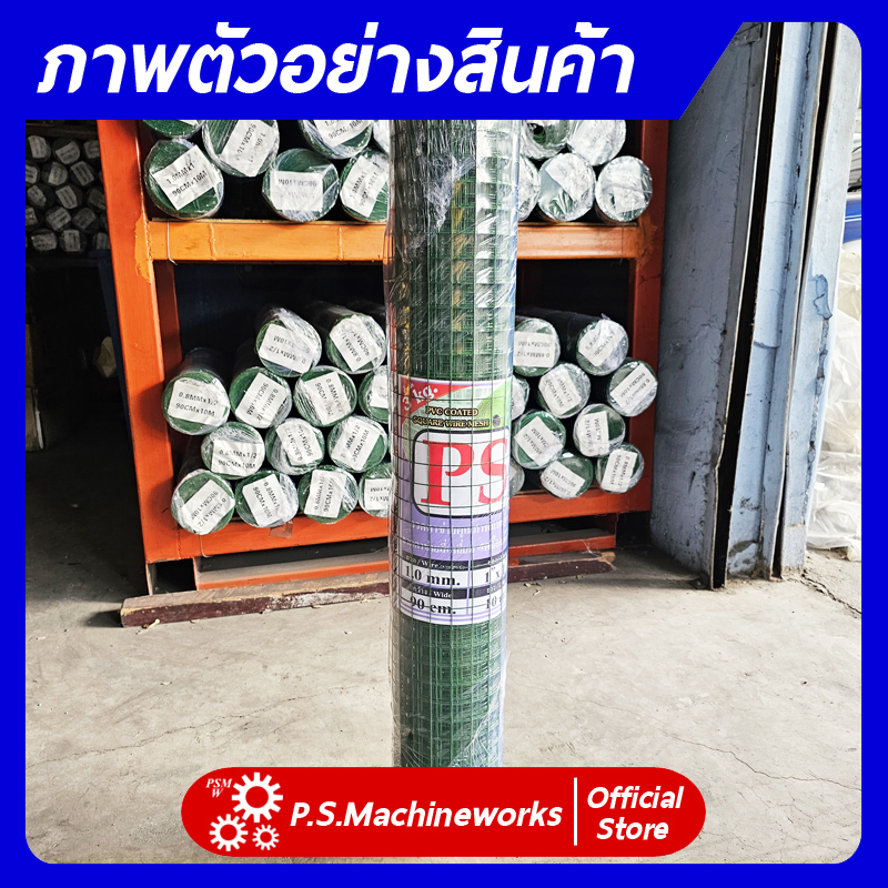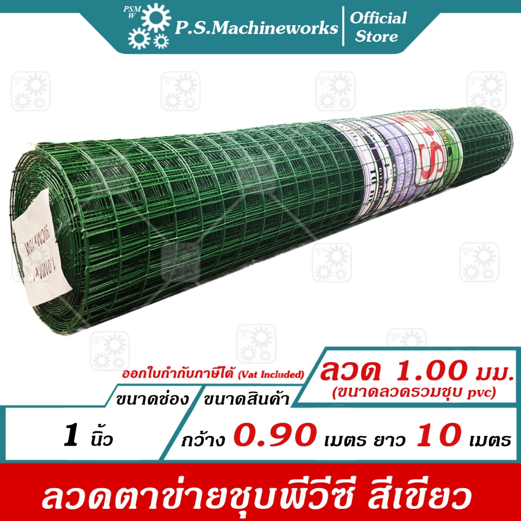 PS ลวดตาข่ายกรงไก่ ชุบ PVC ลวด 1.00 มม.(รวม PVC) สีเขียว ตา1 นิ้ว สูง 0.90 ม. ยาว 10 ม.