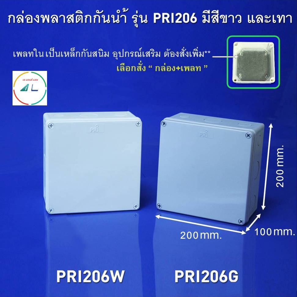 กล่องพลาสติกกันน้ำ กันฝุ่น สีขาวและสีเทา ยี่ห้อ PRI รุ่น PRI206-PRI208(ขนาดใหญ่) ฝาทึบ ฝาใส(พร้อมอุปกรณ์เสริม แผ่นเพลท)