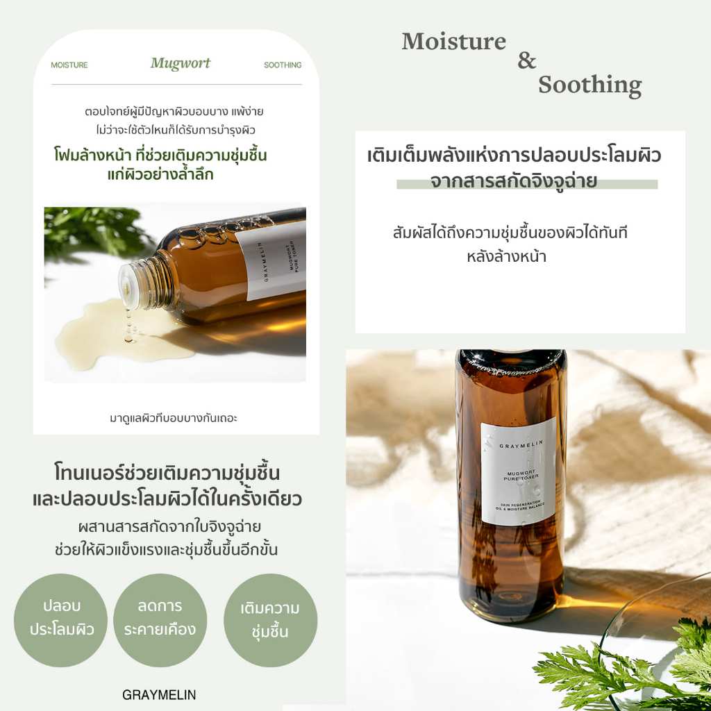 GRAYMELIN Mugwort Pure Toner 200ml. โทนเนอร์จิงจูฉ่าย ปลอบประโลมผิว