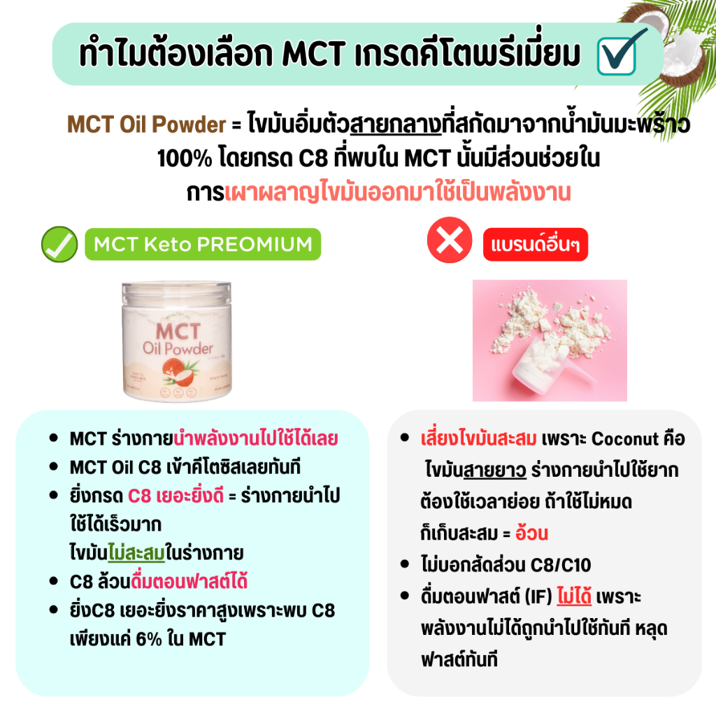 MCT Oil Powder 100% ผงมะพร้าว 200g C8 100% คีโตกินได้ IF กินได้ ผงมะพร้าวสกัดเย็น น้ำมันมะพร้าว