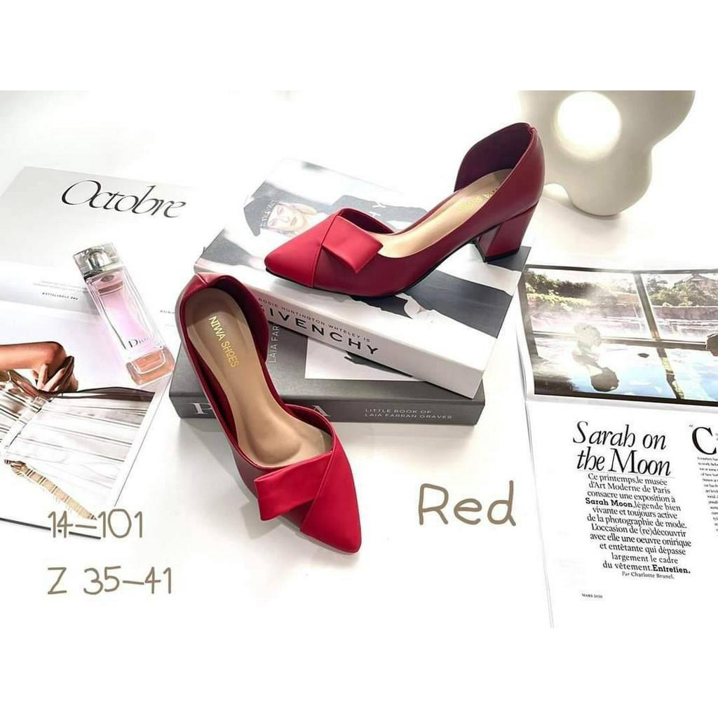 รองเท้า คัทชูหนังนิ่ม หน้าโบว์ Niwa shoes สูง2.5นิ้ว รหัสสินค้า 14-101