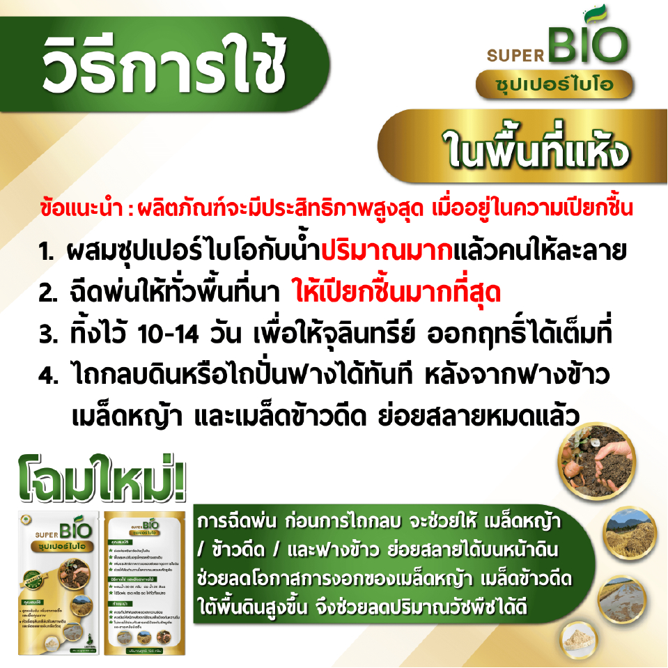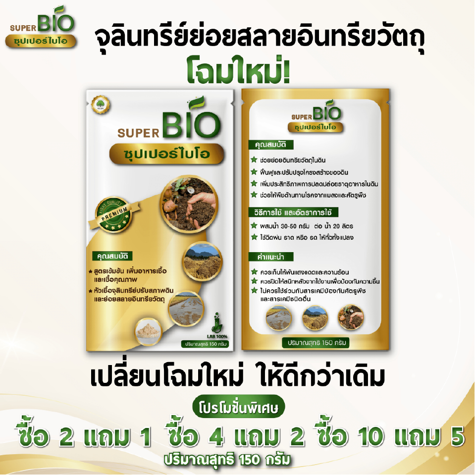 ซุปเปอร์ไบโอ จุลินทรีย์ย่อยสลายฟาง แพ็ค 4 แถม 2 ซอง ตราเทพมงคล ชนิดผง 150 กรัม