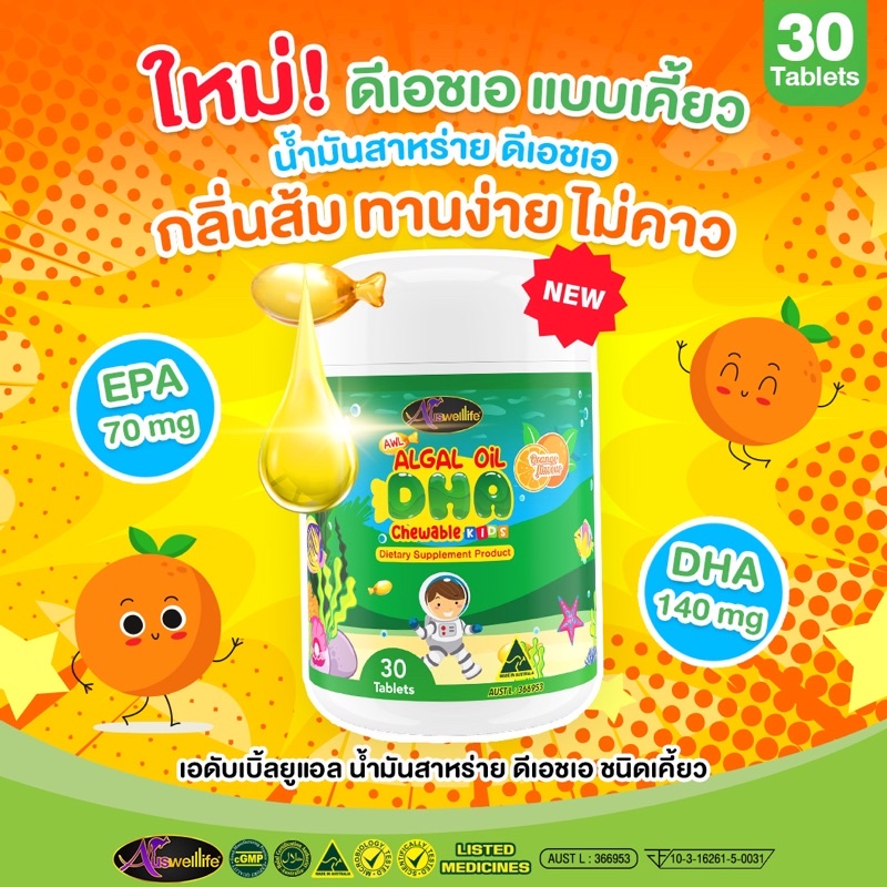 Auswelllif DHA Algal Oil DHA ดีเอชเอ วิตามินเด็ก เสริมภูมิคุ้มกัน อาหารเสริมเด็ก วิตามินบำรุงสมอง