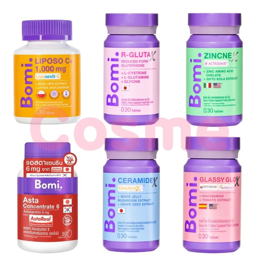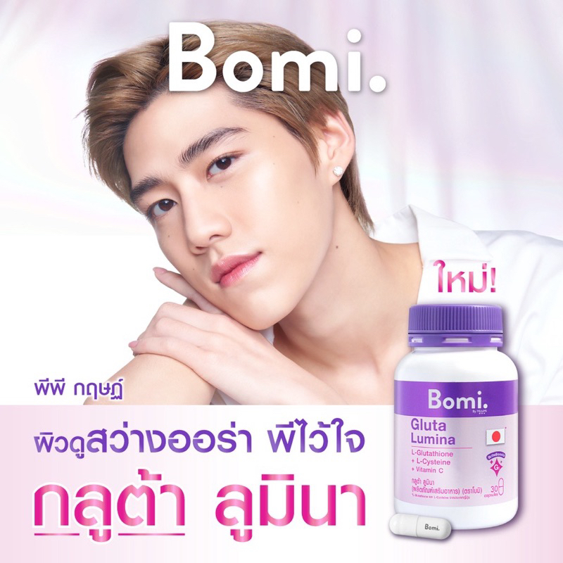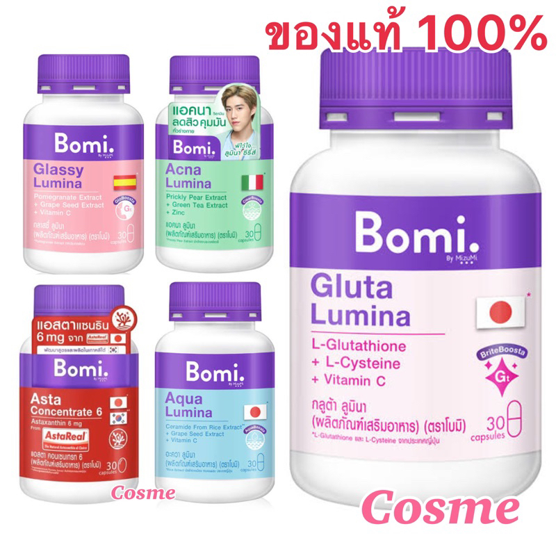 Bomi โบมิ 1 กระปุก มีสูตร Gluta , Glassy , Acna , Asta และAqua (30 Capsules)