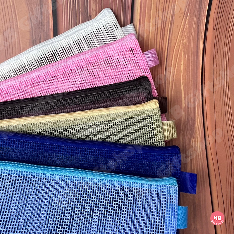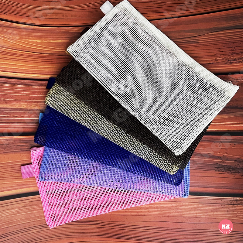 KB กระเป๋าดินสอยกโหล กล่องดินสอ เครื่องเขียน อุปกรณ์สำนักงานและโรงเรียน (12ใบ) คละสี ขนาด 9x5 นิ้ว ผ้าตาข่าย