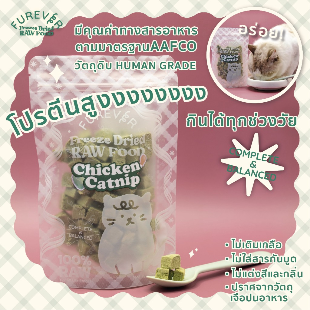 FUREVER Freeze dried Raw Food - Chicken and Catnip 50g ฟรีซดรายบาร์ฟ สูตรไก่ แคทนิป สำหรับแมว 50g
