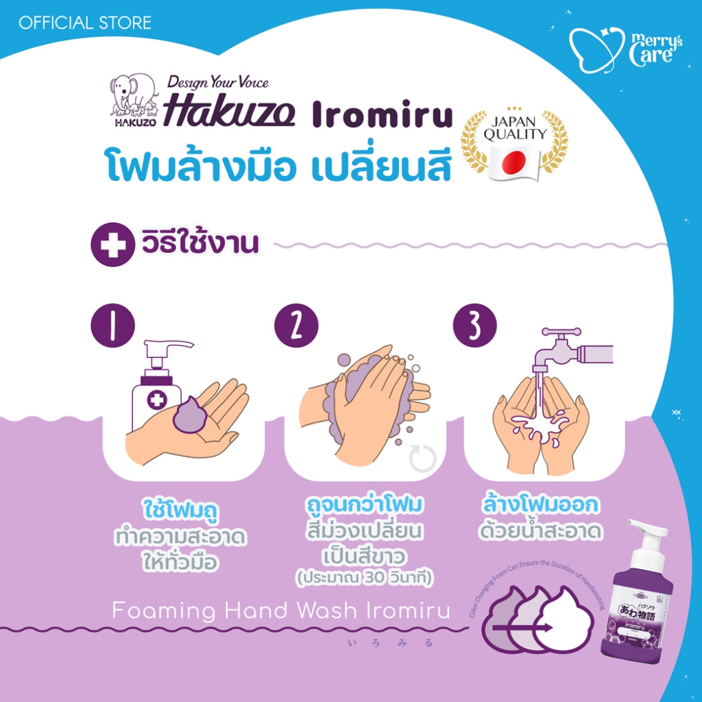 Hakuzo Awamonogatari Iromiru hand soap โฟมล้างมือ สบู่ เปลี่ยนสี ขวดปั้ม 500ml.