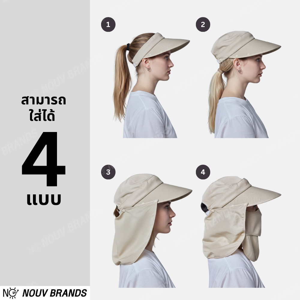 หมวกกันแดด กันรังสียูวี ใส่ได้ 4 แบบ ระบายอากาศได้ UPF40 nouv brands