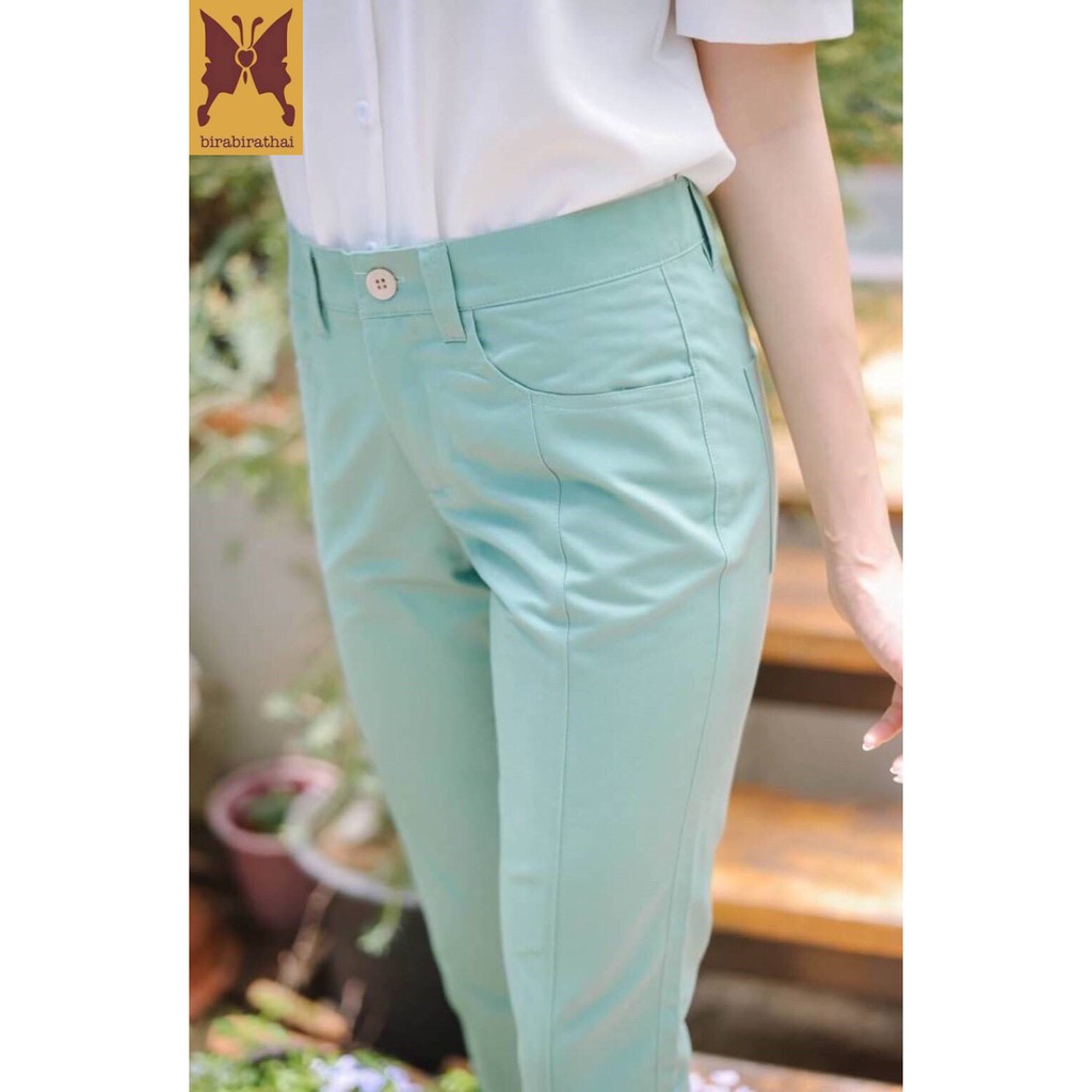 กางเกง 5 ส่วน ดำ ขายาว ห้าส่วน ทำงาน ลำลอง ไซส์ใหญ่ ทรงกระบอก BIRABIRA P003 | Cropped Trousers