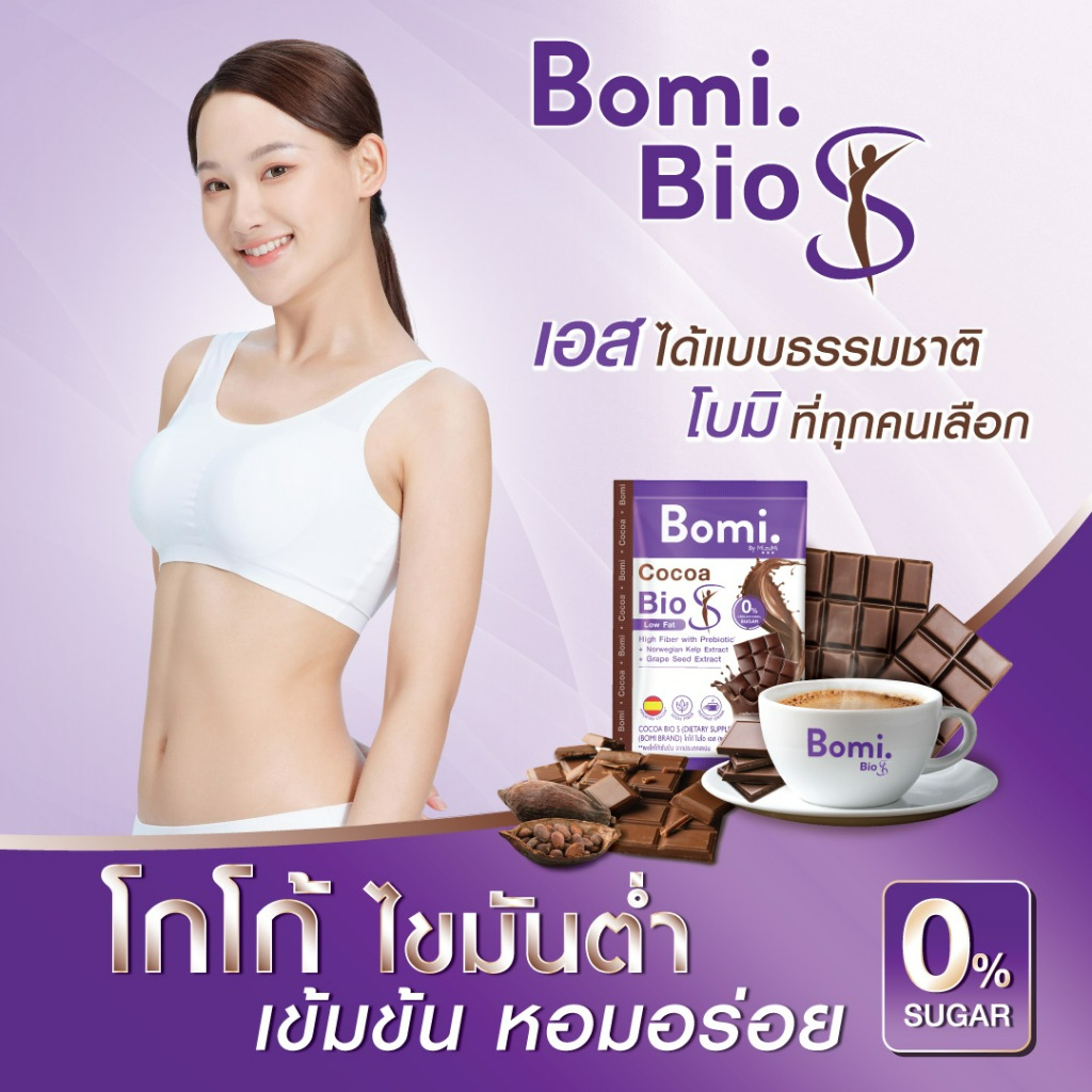 โกโก้หวานน้อย Bomi Cocoa Bio S (10x15g) โบมิ โกโก้ ไบโอ เอส โกโก้ไขมันต่ำ มีพรีไบโอ