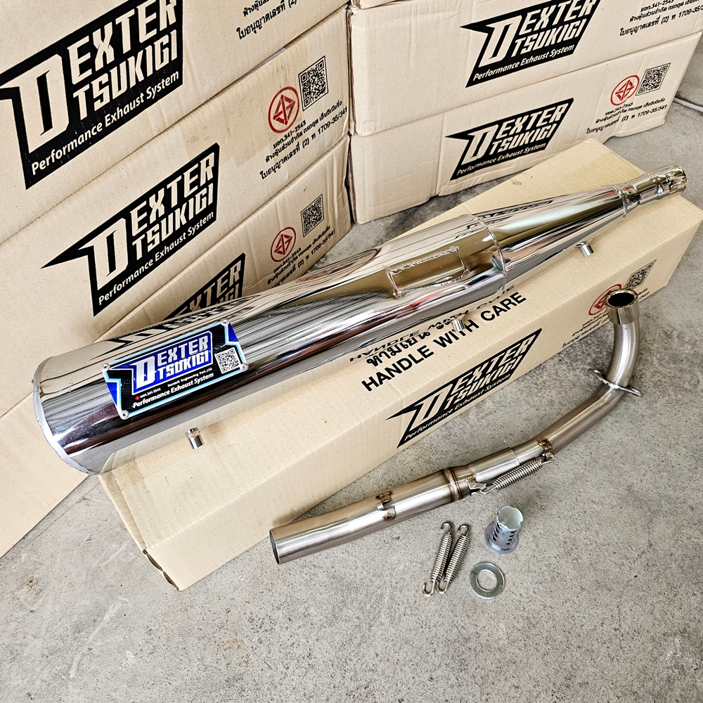 ท่อผ่า มอก. DEXTER Wave125R I S ไฟเลี้ยวบังลม Dream 125 ชุบ คอเลส คอ25ออก32 จุก 32 มิล แถมจุกลดเสียง
